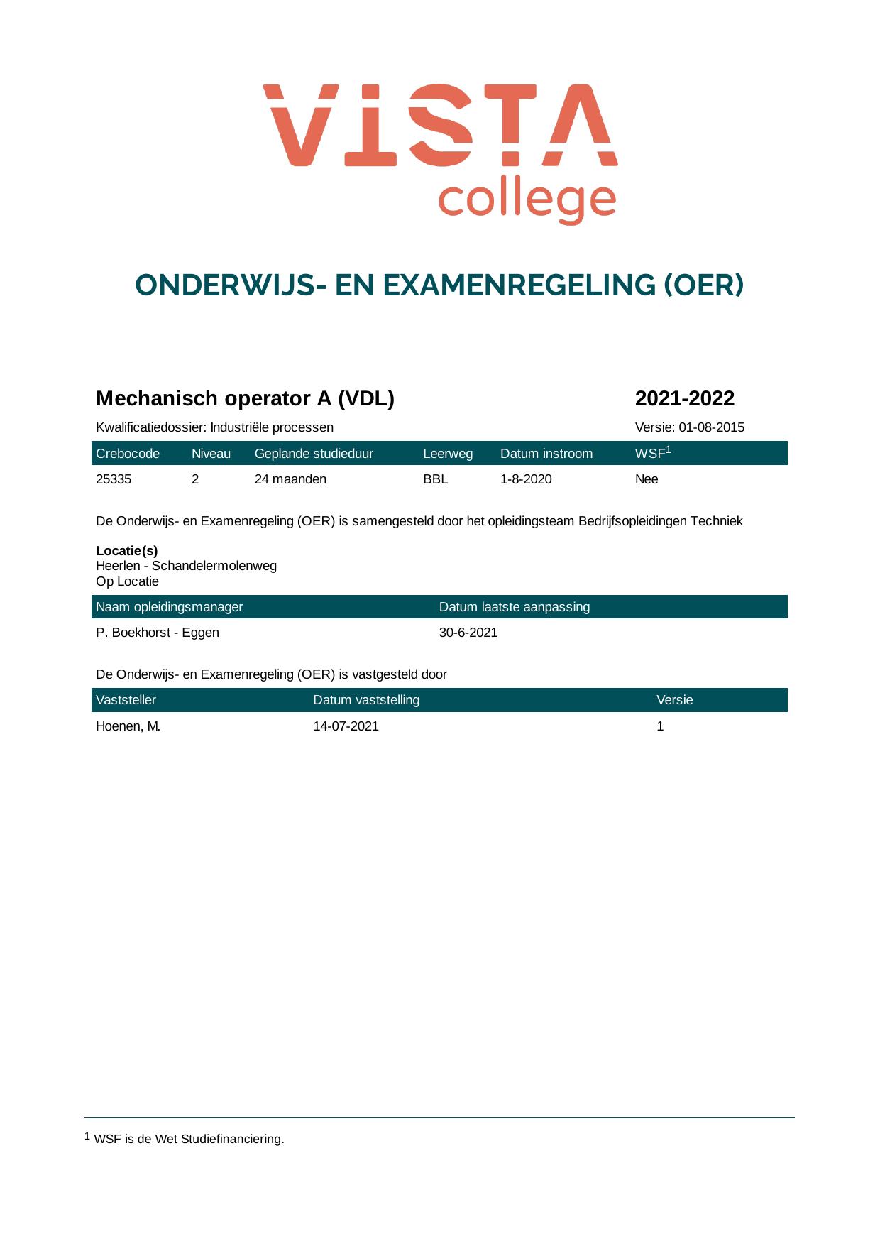 Mechanisch operator A (VDL) 25335B1EVDL in cohort 2021-2022