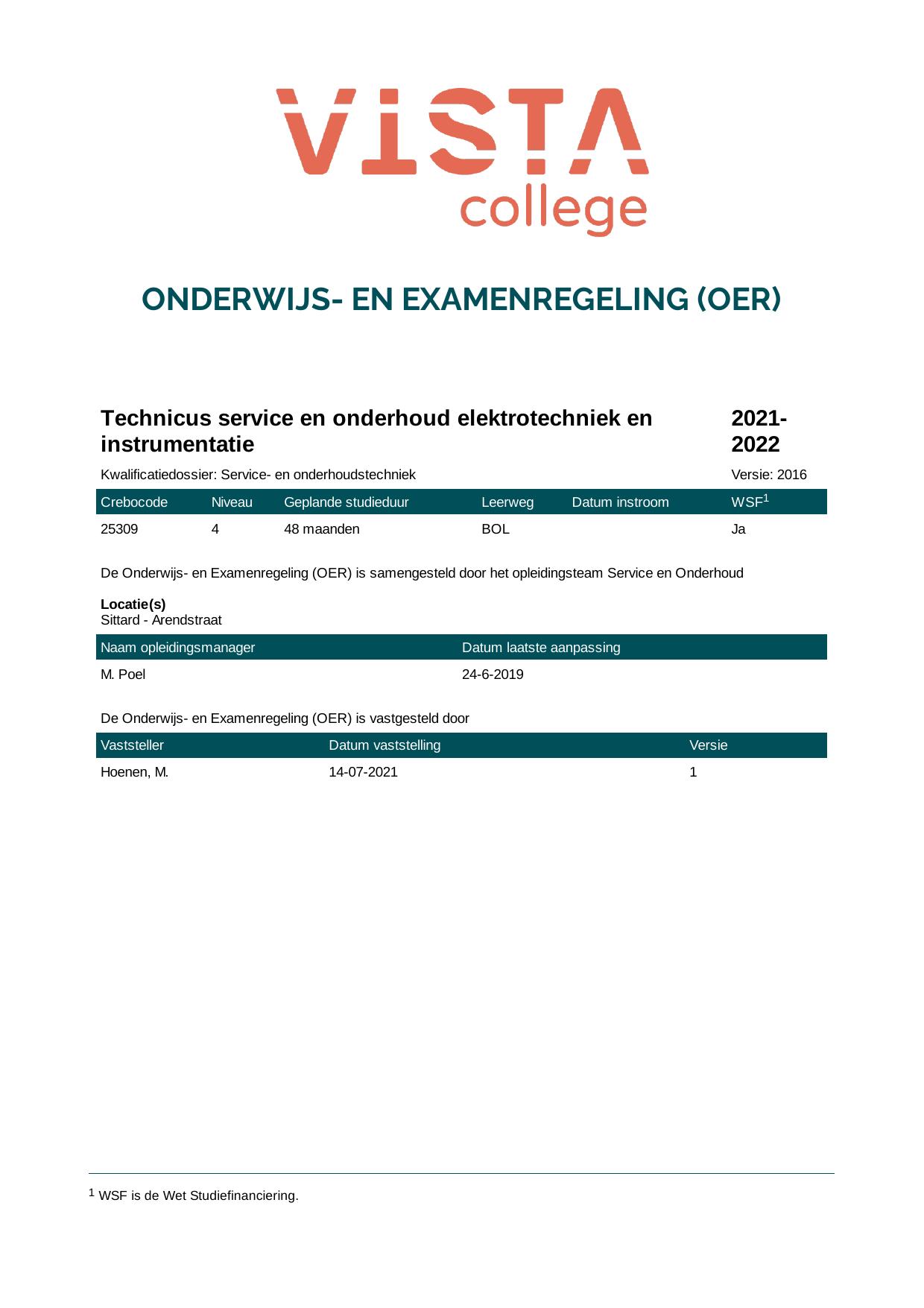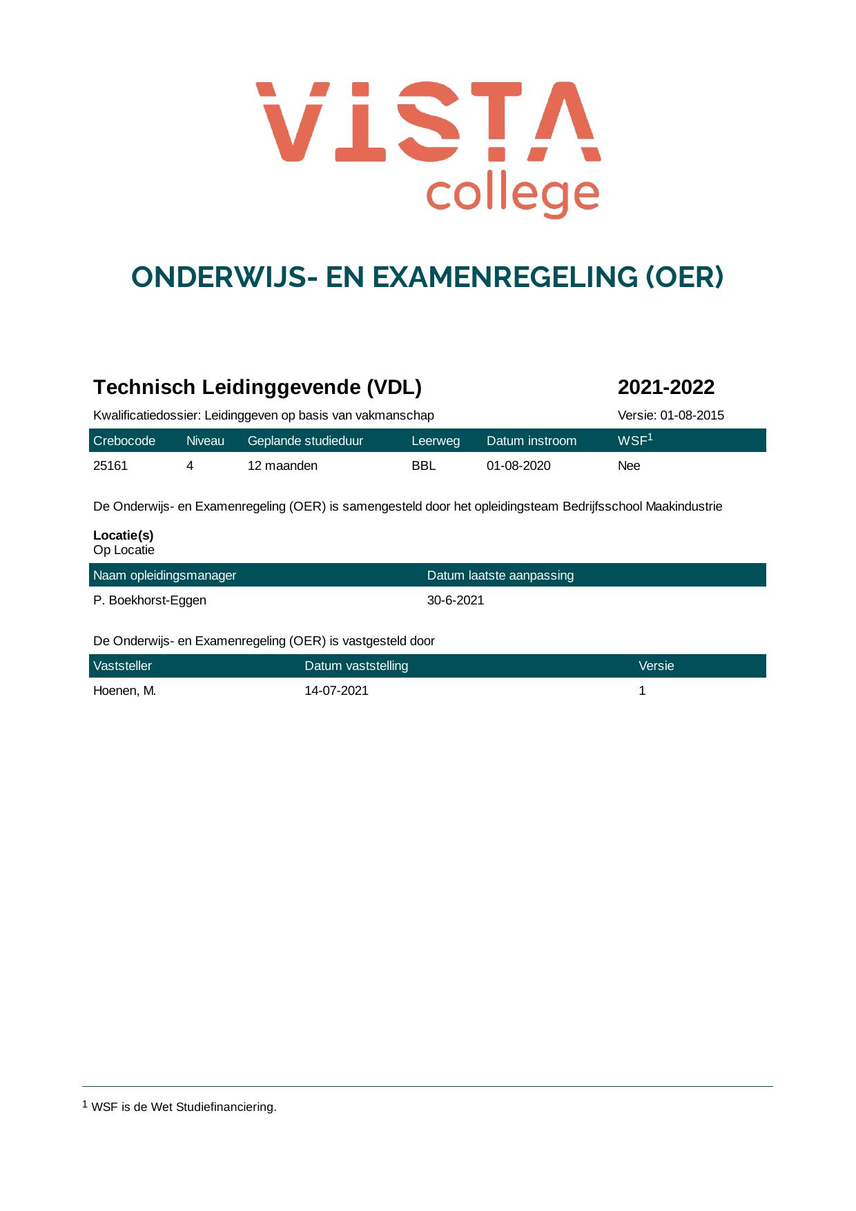 Technisch Leidinggevende (VDL) 25161B1EVDL in cohort 2021-2022