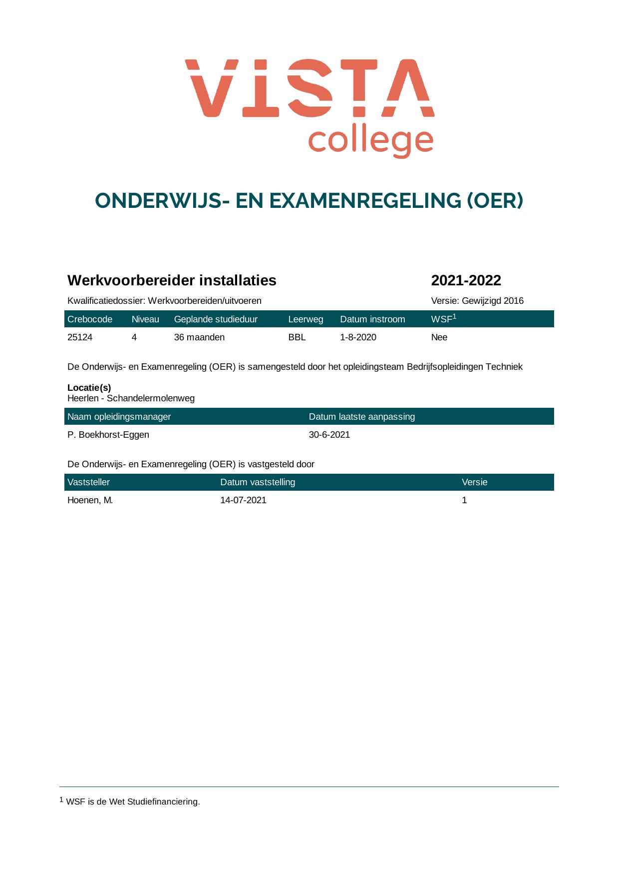 Werkvoorbereider installaties 25124B1E in cohort 2021-2022
