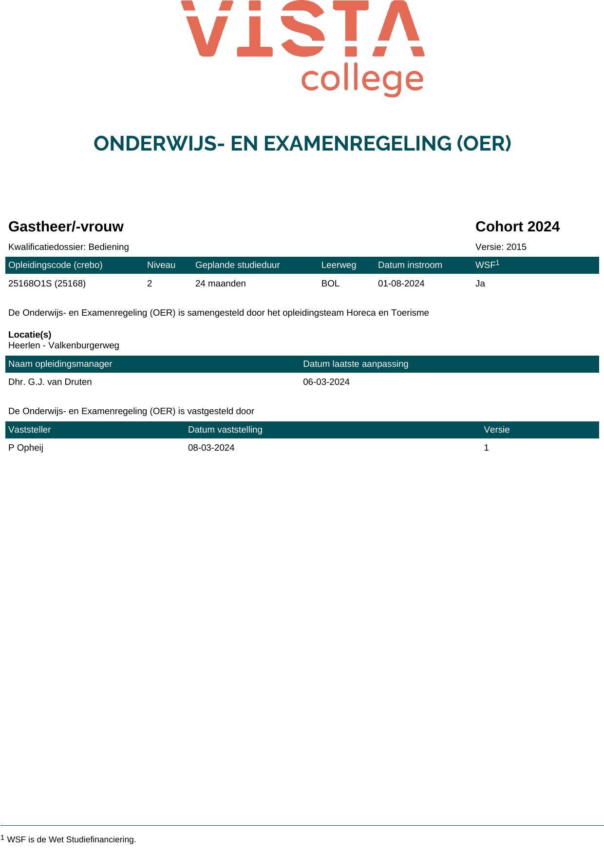 Gastheer/-vrouw 25168B1S in cohort 2024-2025
