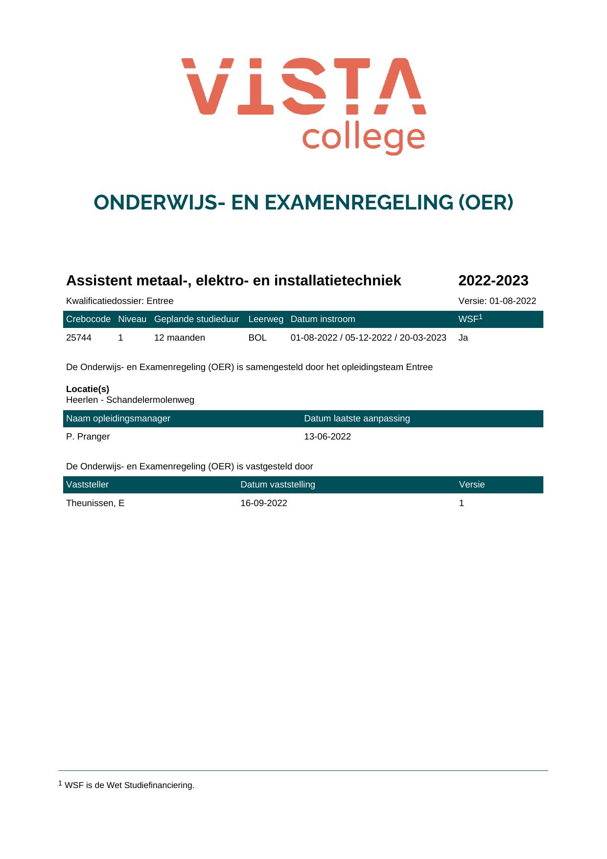 Assistent metaal-, elektro- en installatietechniek 25744O1S in cohort 2022-2023