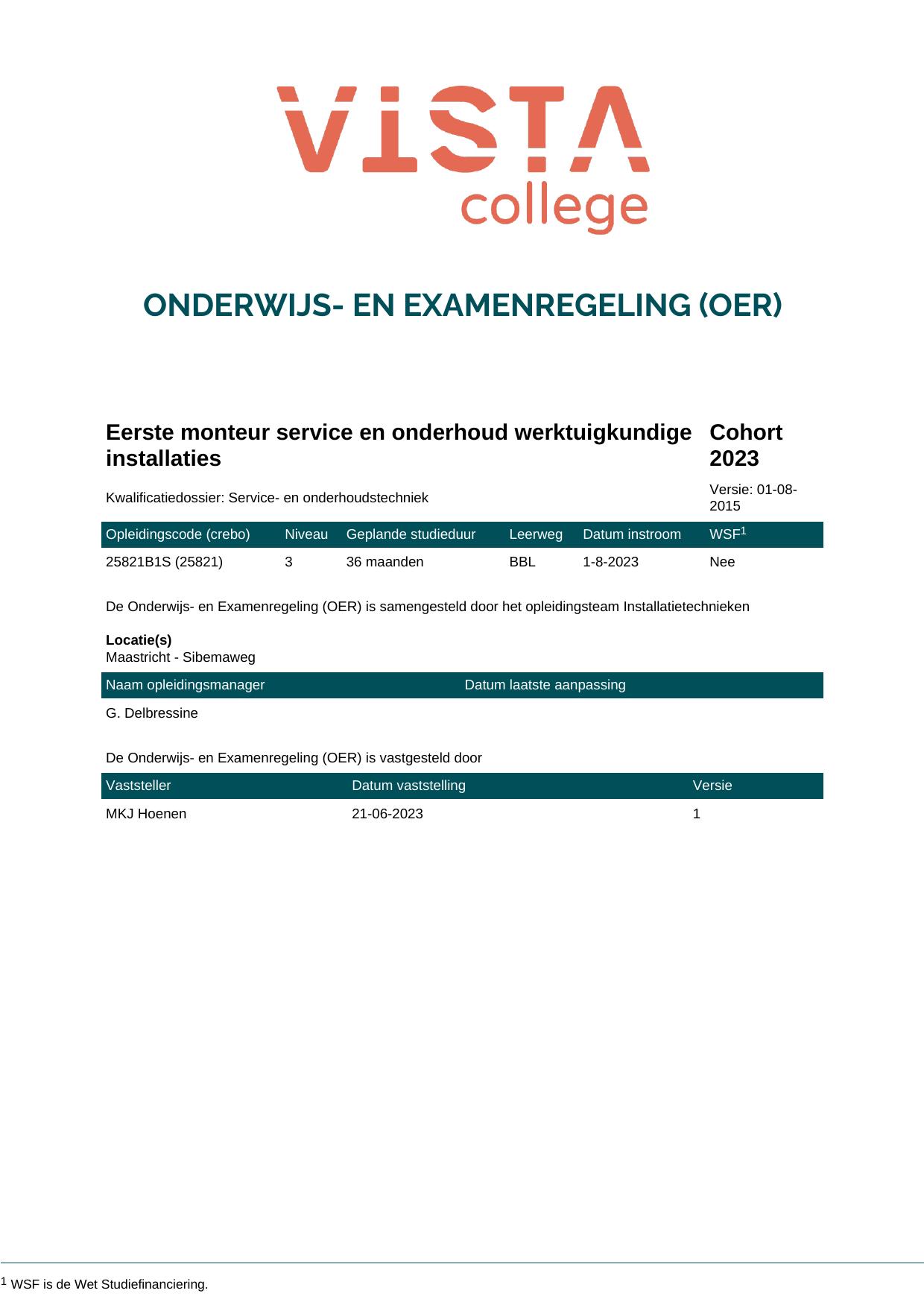 Eerste monteur service en onderhoud werktuigkundige installaties 25821B1S in cohort 2023-2024
