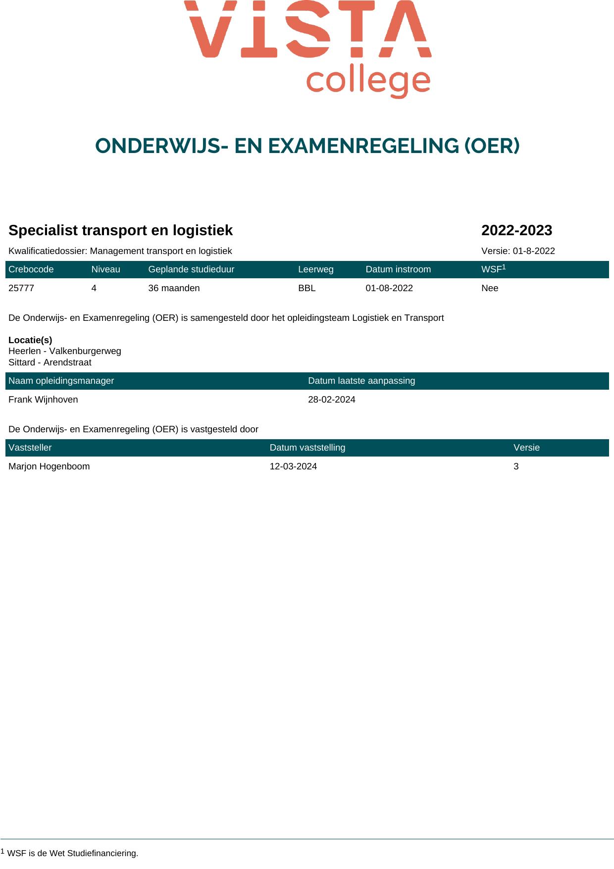 Specialist transport en logistiek 25777BBL in cohort 2023-2024