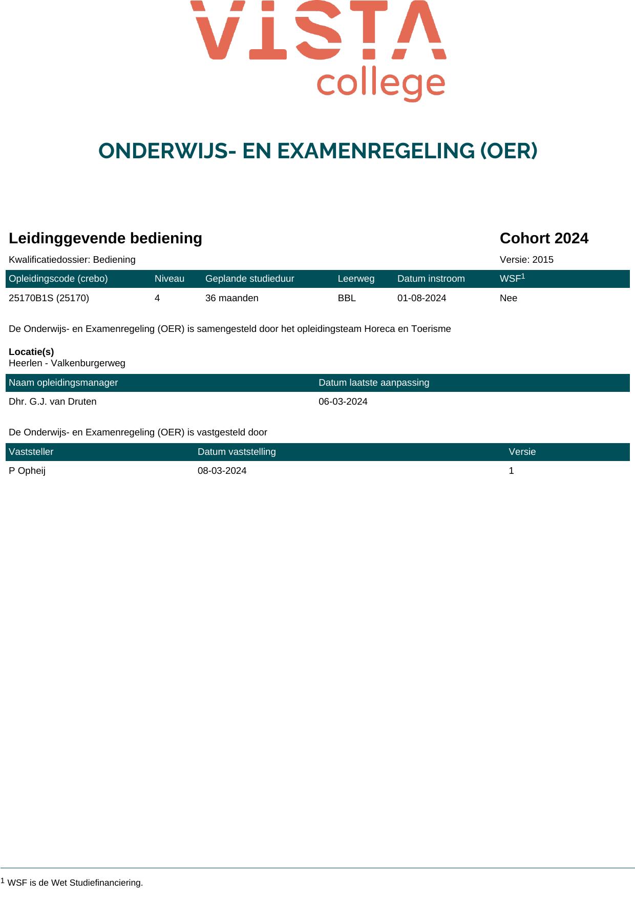 Leidinggevende bediening 25170B1S in cohort 2024-2025