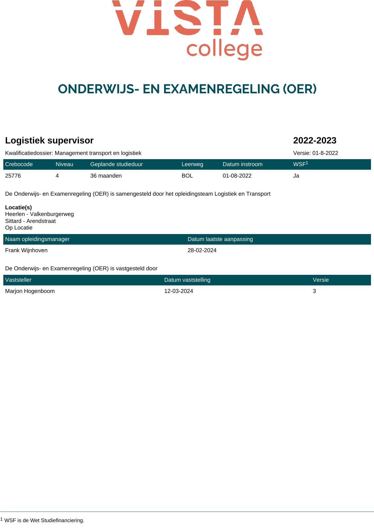 Logistiek supervisor 25776BBL in cohort 2023-2024