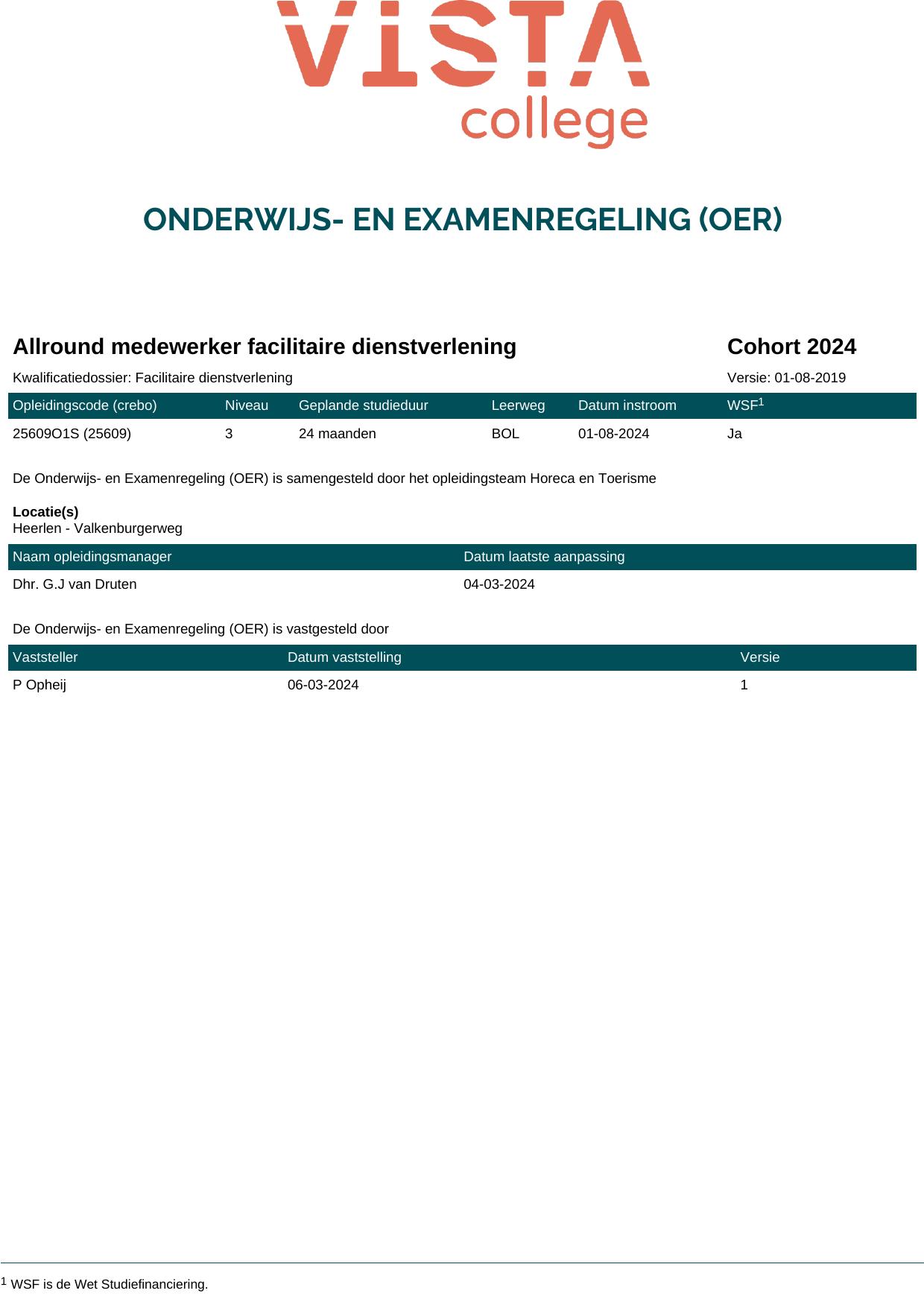 Allround medewerker facilitaire dienstverlening 25609O1S in cohort 2024-2025