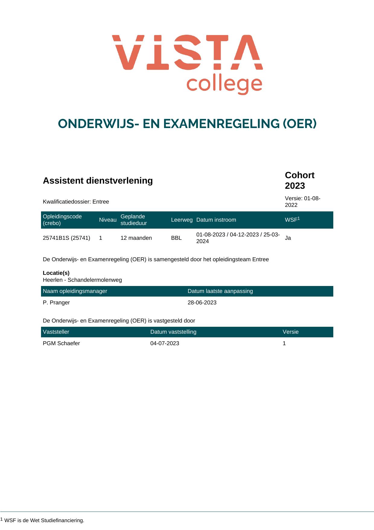 Assistent dienstverlening 25741B1S in cohort 2023-2024