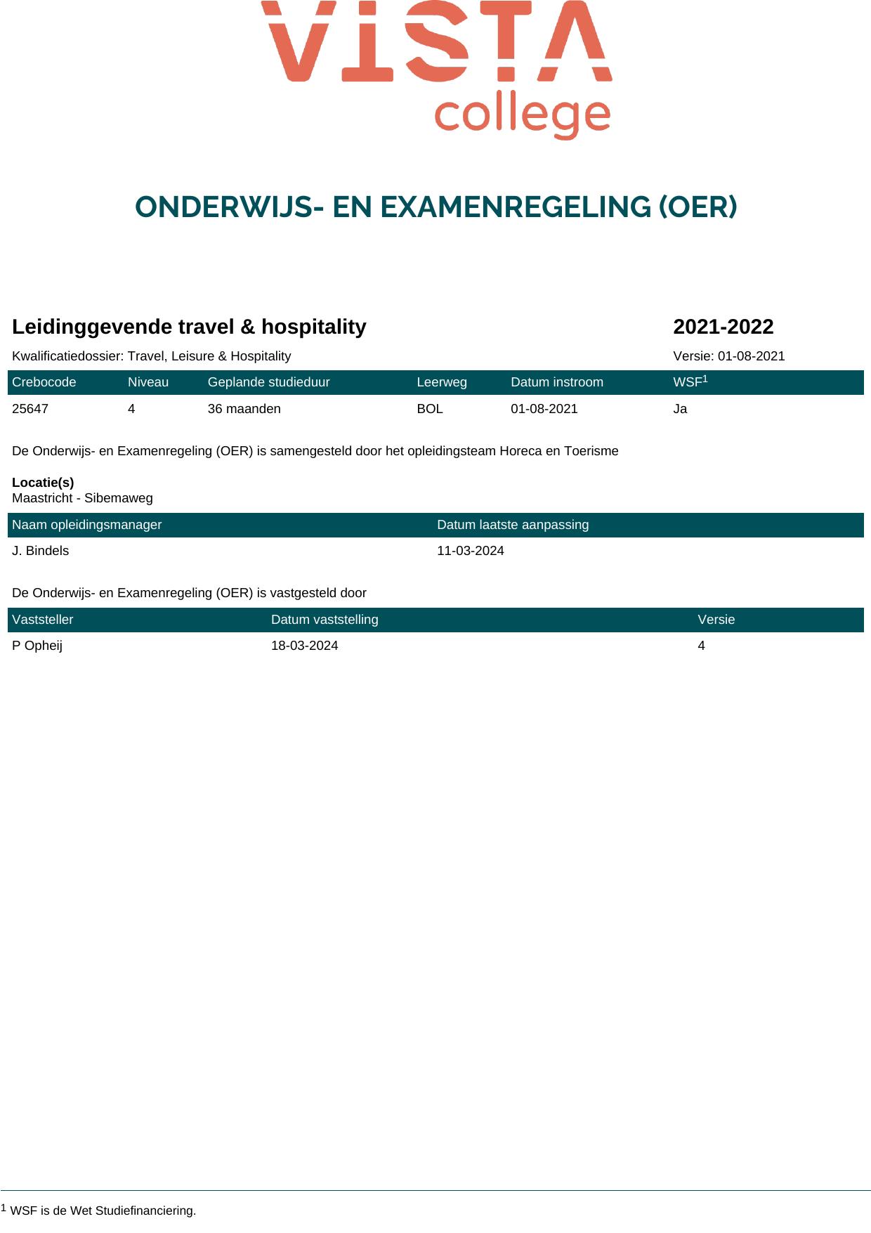Leidinggevende travel & hospitality 25647BOL in cohort 2021-2022