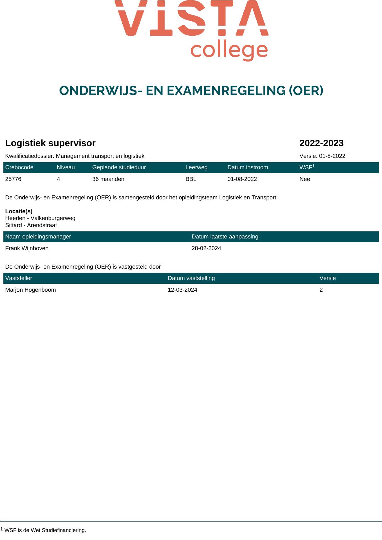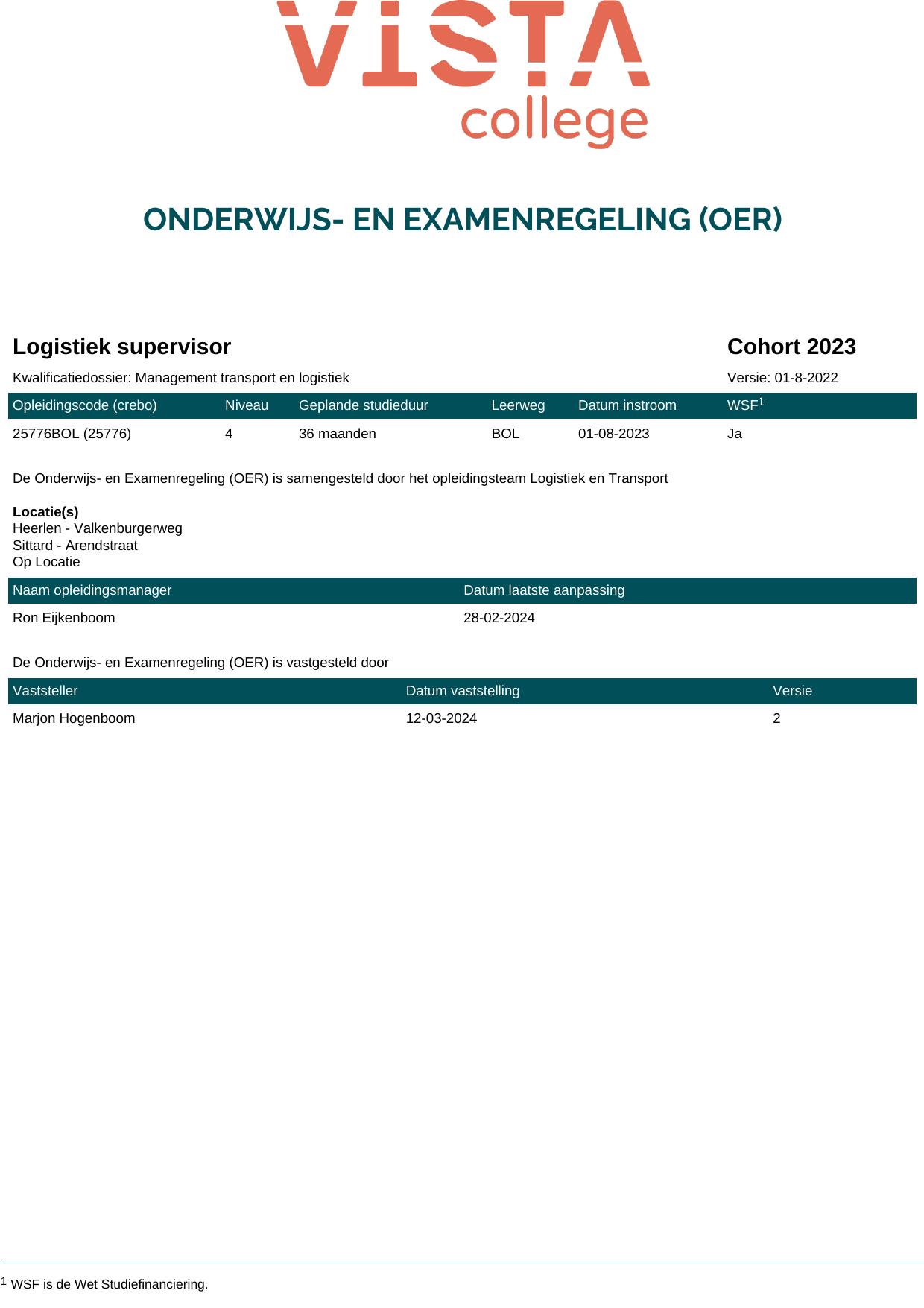 Logistiek supervisor 25776BOL in cohort 2023-2024
