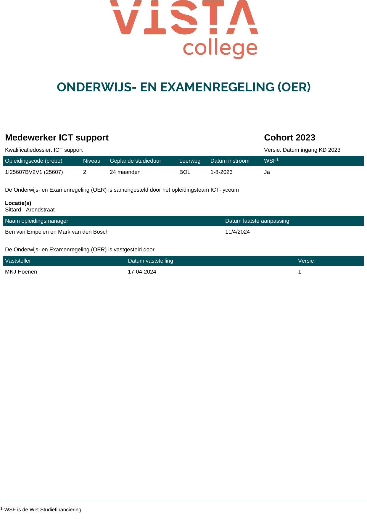 Medewerker ICT support 1I25607BV2V1 in cohort 2023-2024