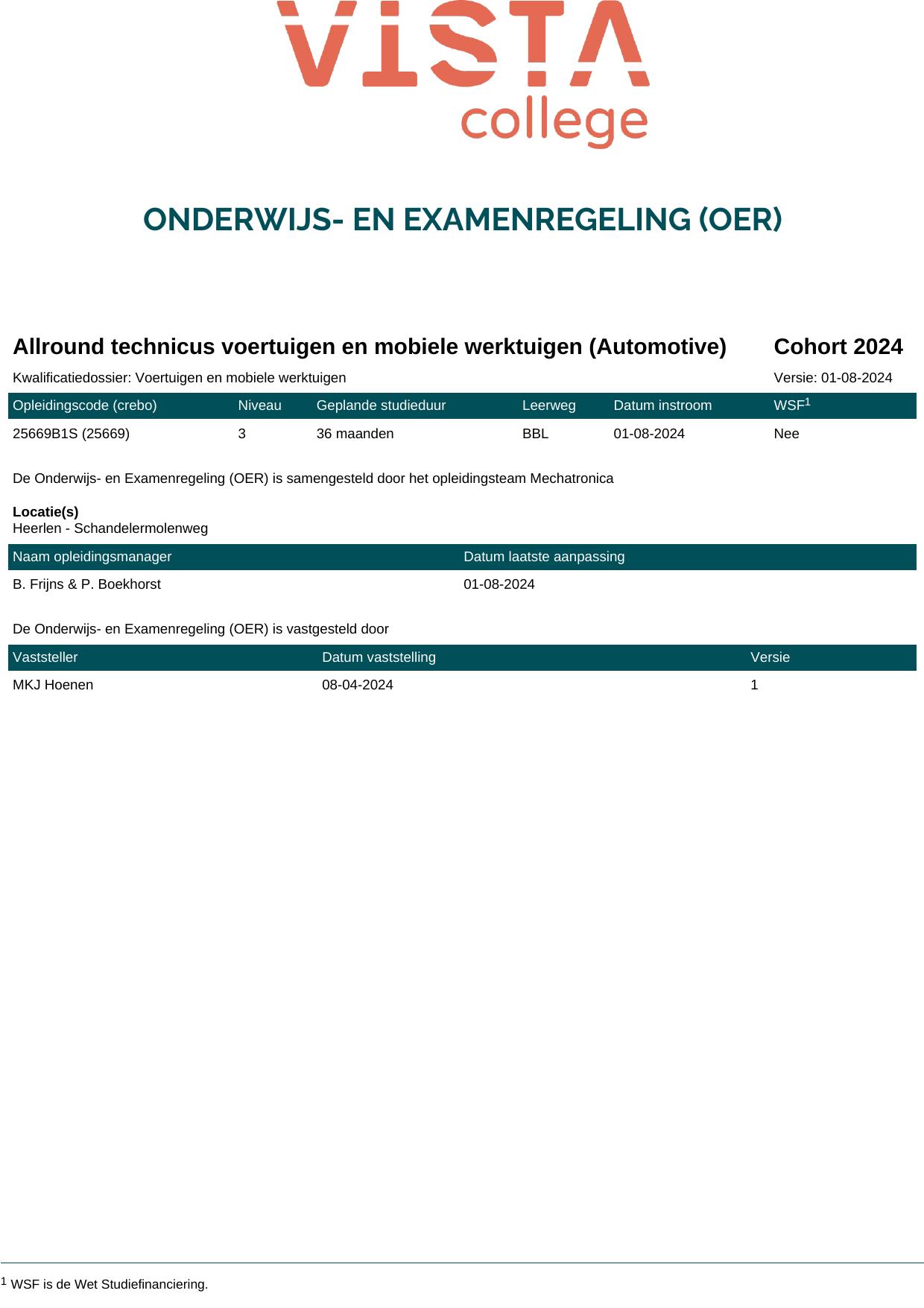 Allround technicus voertuigen en mobiele werktuigen (Automotive) 25669B1S in cohort 2024-2025