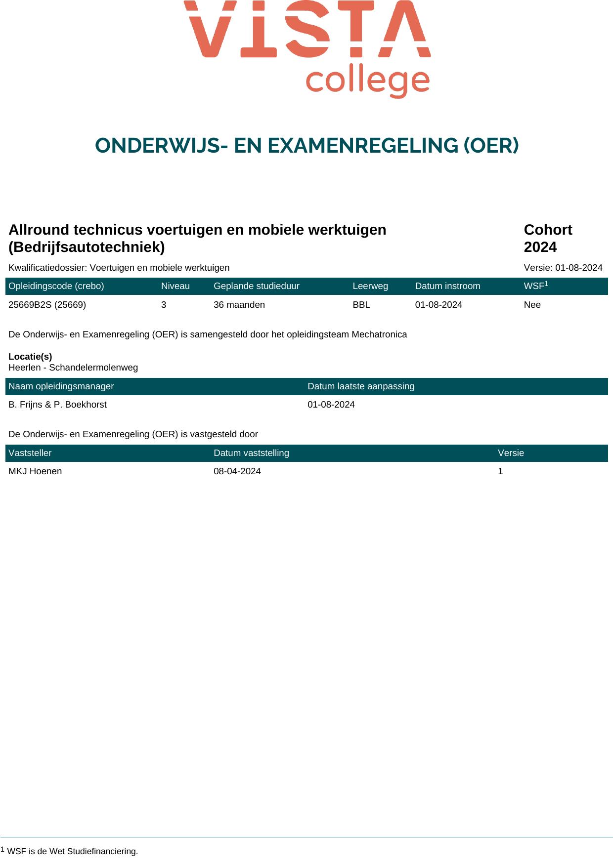 Allround technicus voertuigen en mobiele werktuigen (Bedrijfsautotechniek) 25669B2S in cohort 2024-2025
