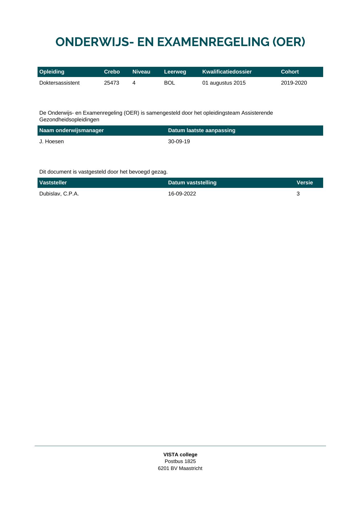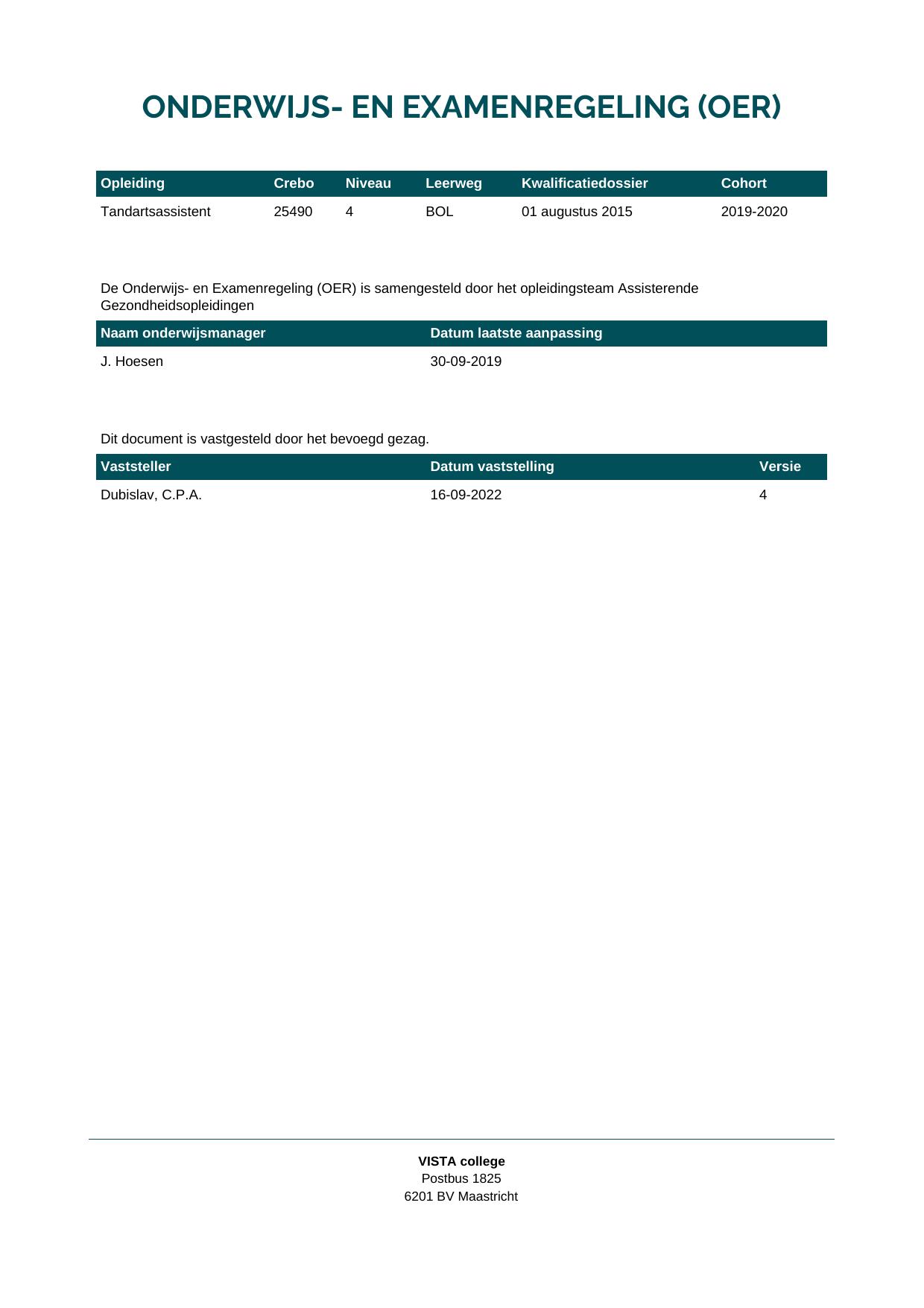 Tandartsassistent 25490O1S in cohort 2019-2020