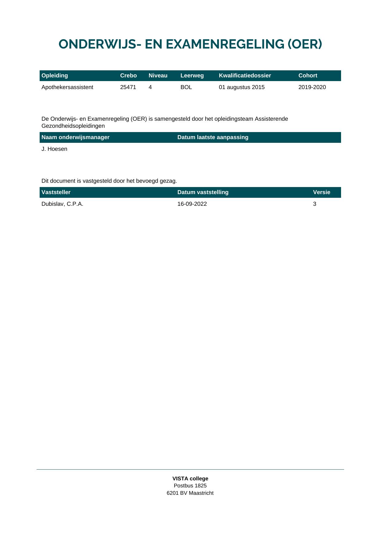Apothekersassistent 25471O1S in cohort 2019-2020