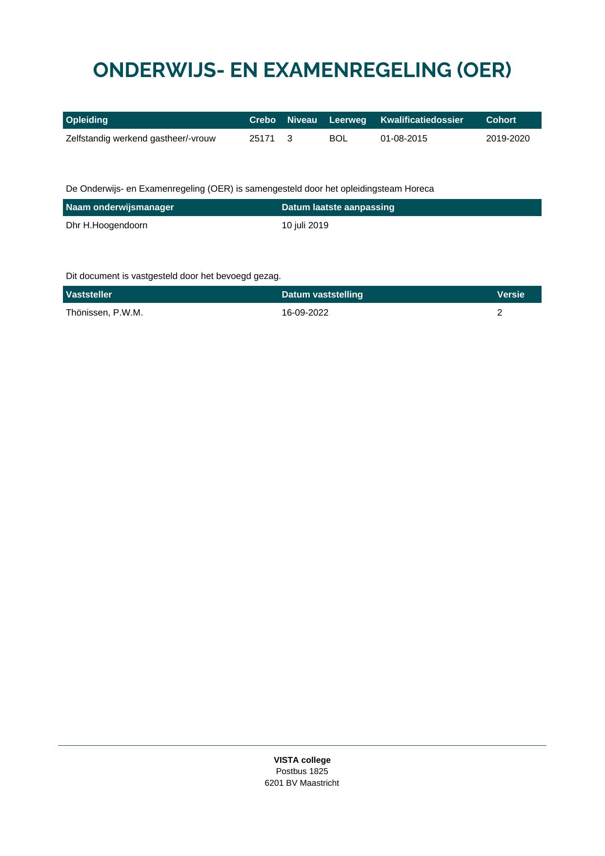 Zelfstandig werkend gastheer/-vrouw 25171O1S in cohort 2019-2020