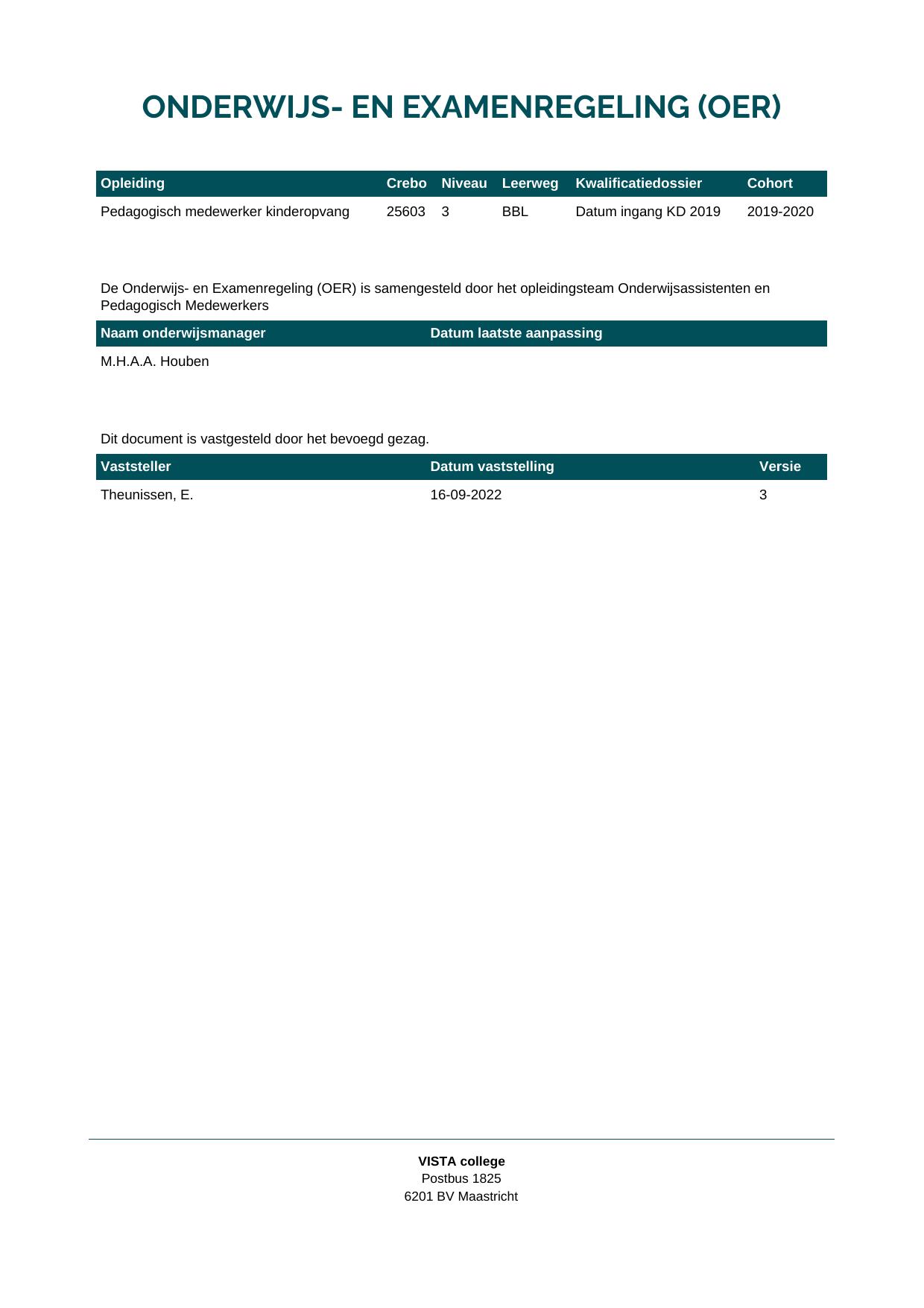Pedagogisch medewerker kinderopvang 25603O1S in cohort 2019-2020