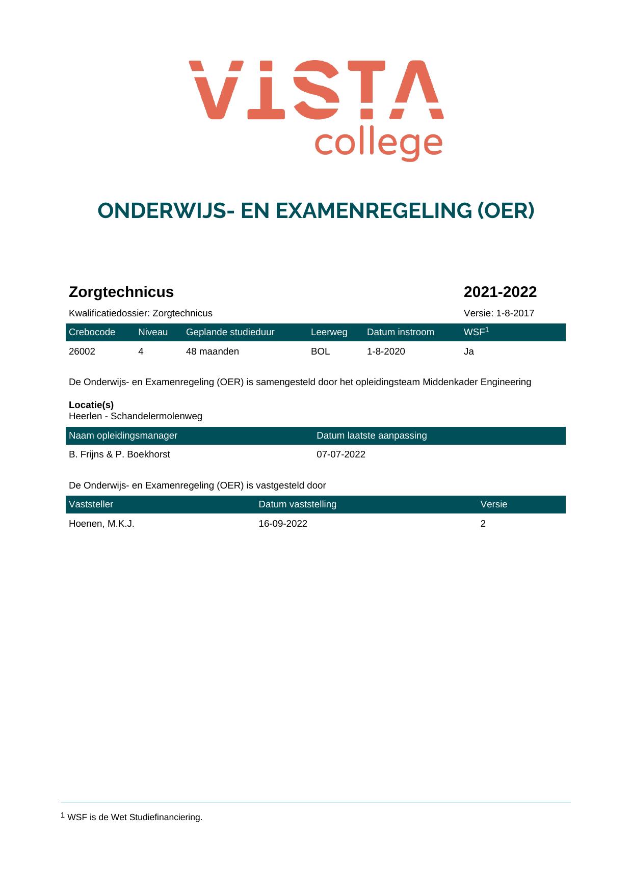 Zorgtechnicus 26002O1S in cohort 2021-2022