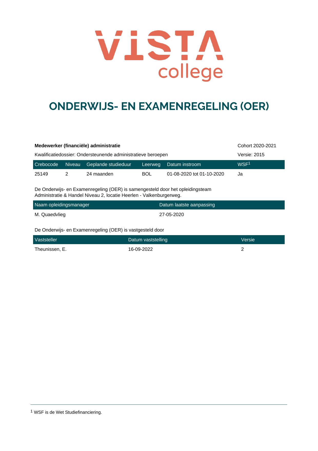 Medewerker (financiële) administratie 1F25149BV2V1 in cohort 2020-2021