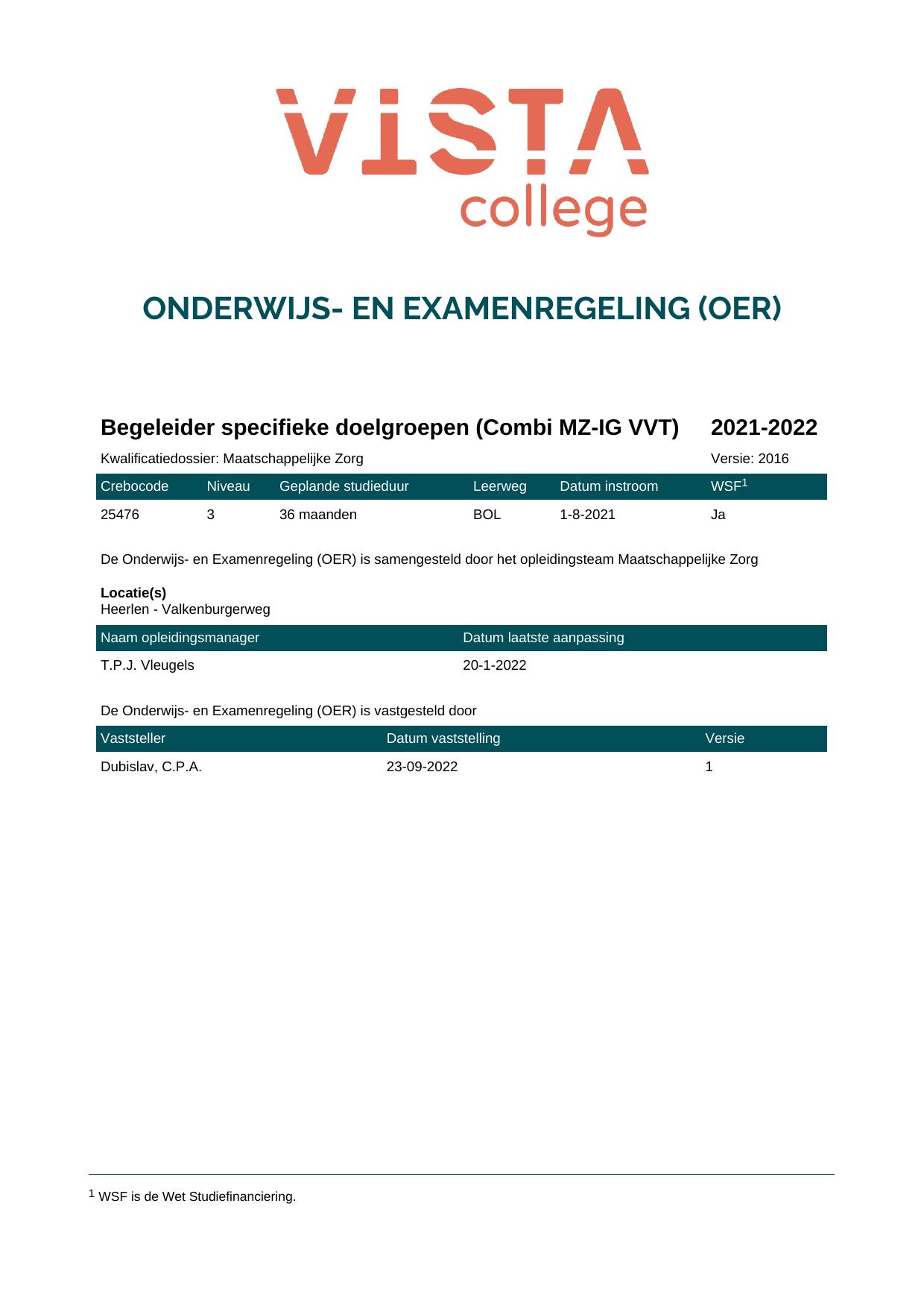 Begeleider specifieke doelgroepen (Combi MZ-IG VVT) 25476O2S in cohort 2020-2021