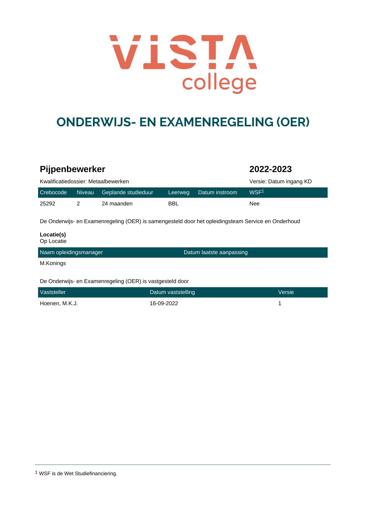 Pijpenbewerker 25292B1S in cohort 2022-2023