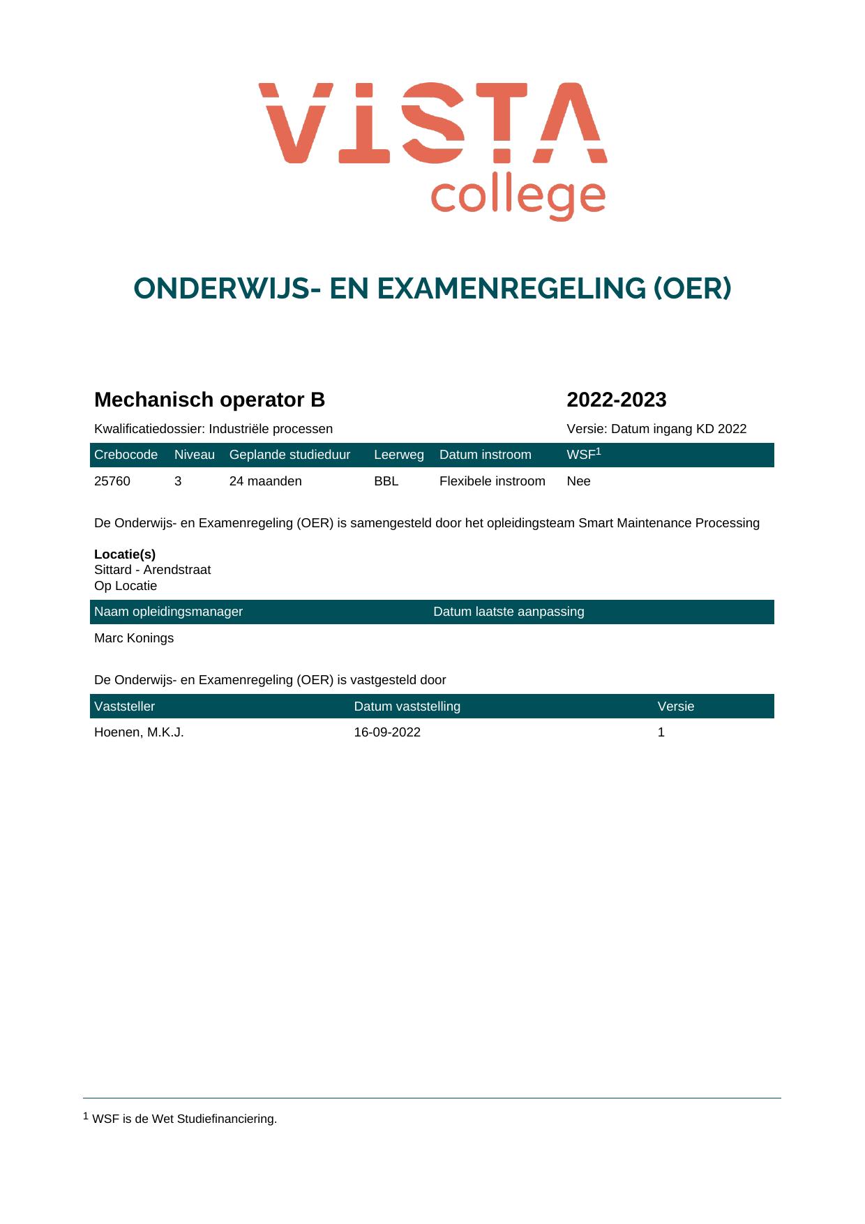 Mechanisch operator B 25760B1E in cohort 2022-2023