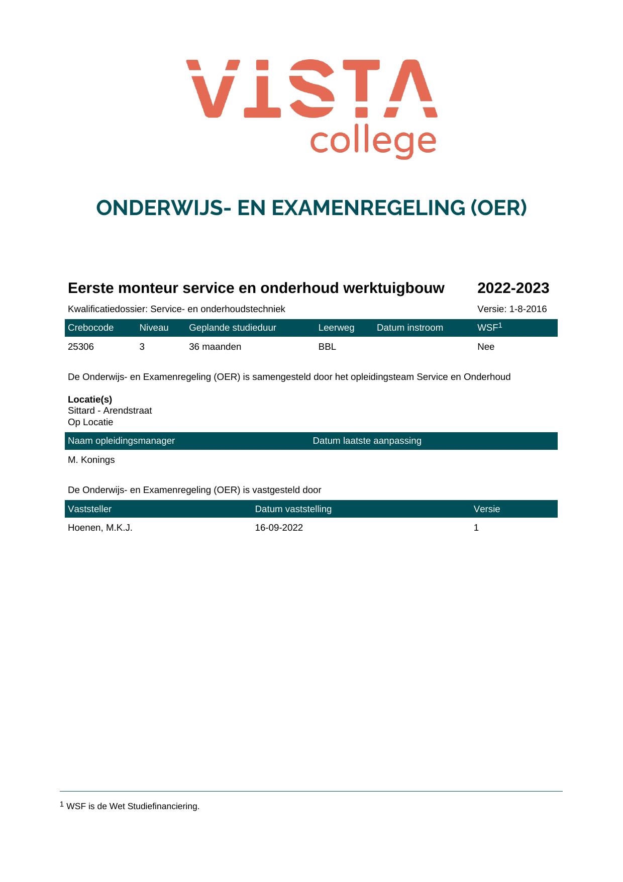 Eerste monteur service en onderhoud werktuigbouw 25306B1S in cohort 2022-2023