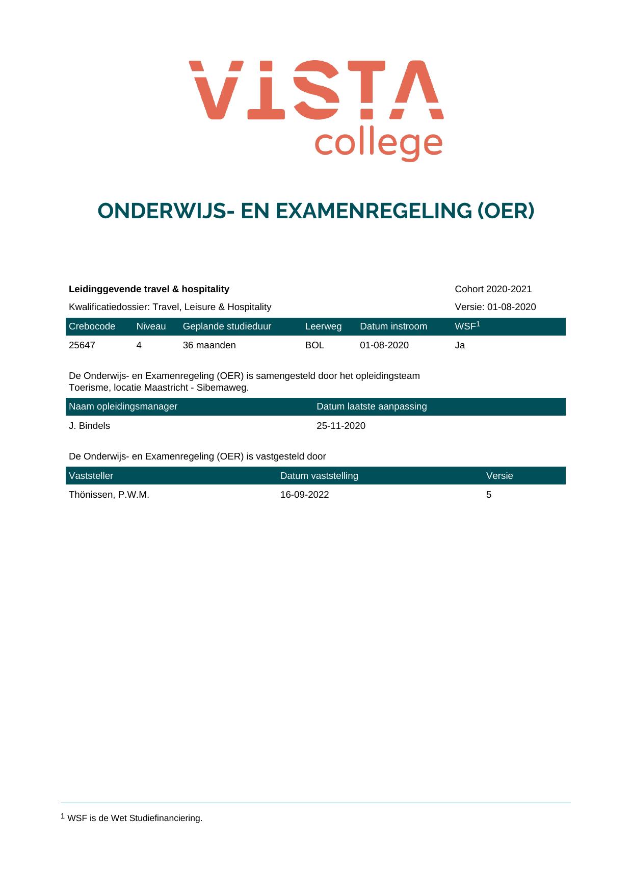 Leidinggevende travel & hospitality 1T25647BV3V1 in cohort 2020-2021