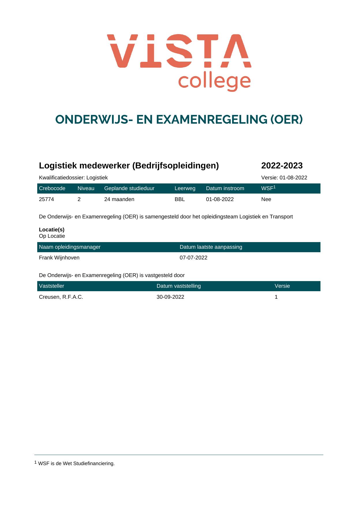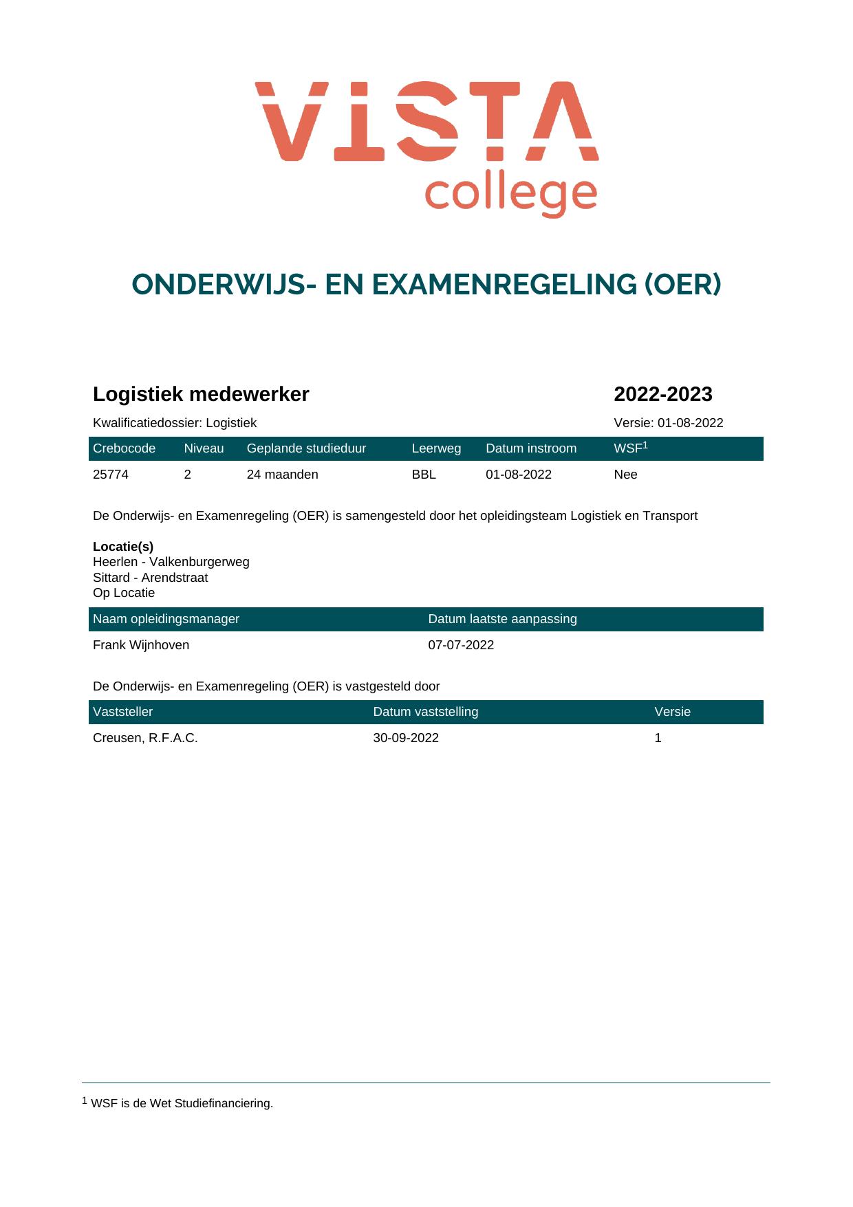 Logistiek medewerker 25774BBL1 in cohort 2022-2023