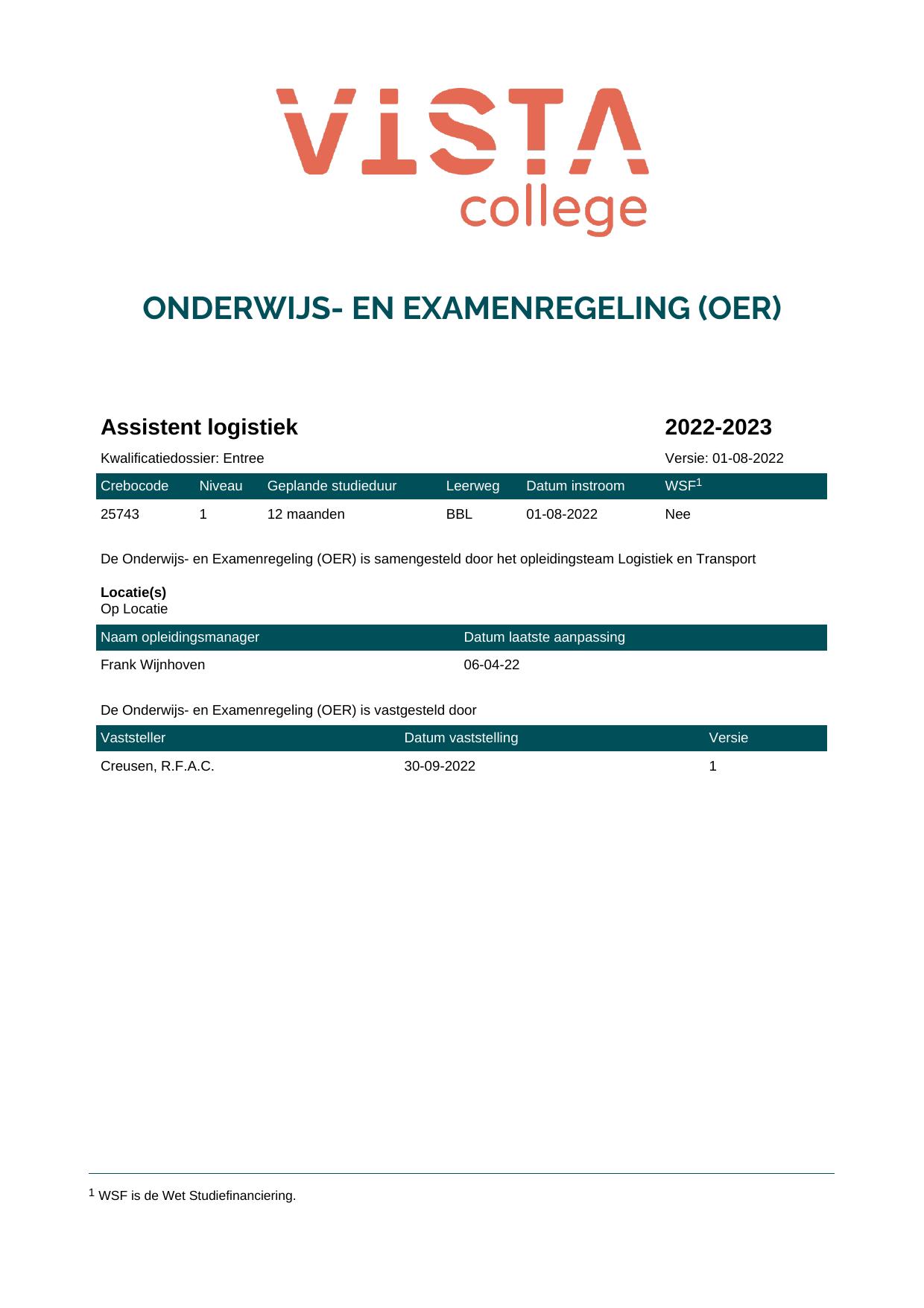 Assistent logistiek 25743BBL in cohort 2022-2023