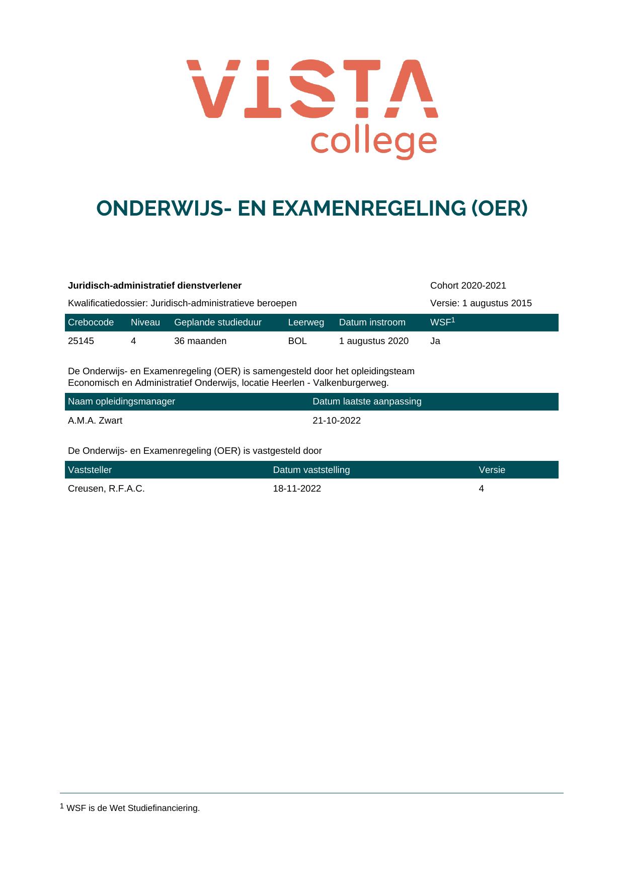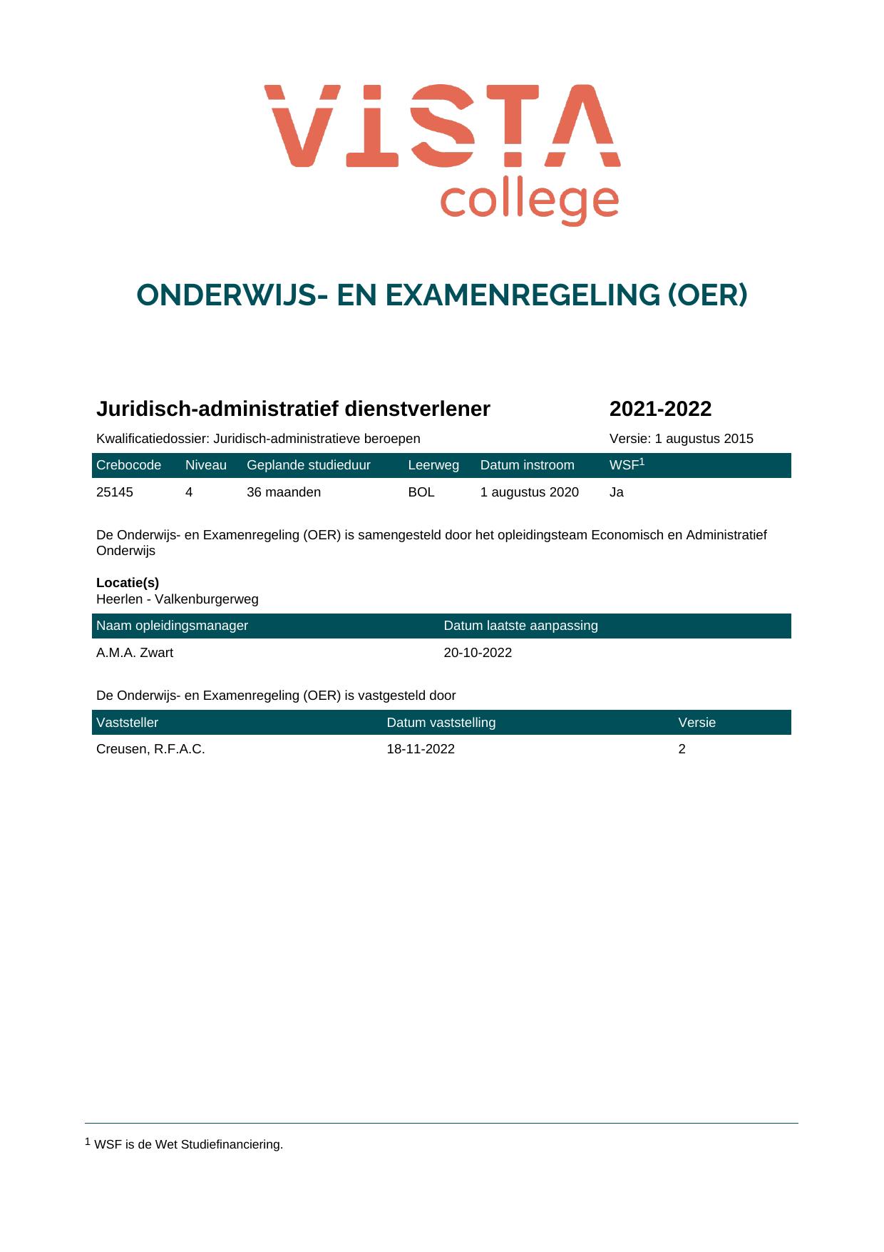 Juridisch-administratief dienstverlener 25145O1S in cohort 2020-2021