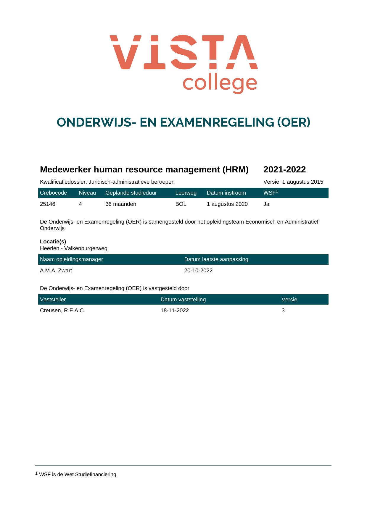 Medewerker human resource management (HRM) 25146O1S in cohort 2021-2022