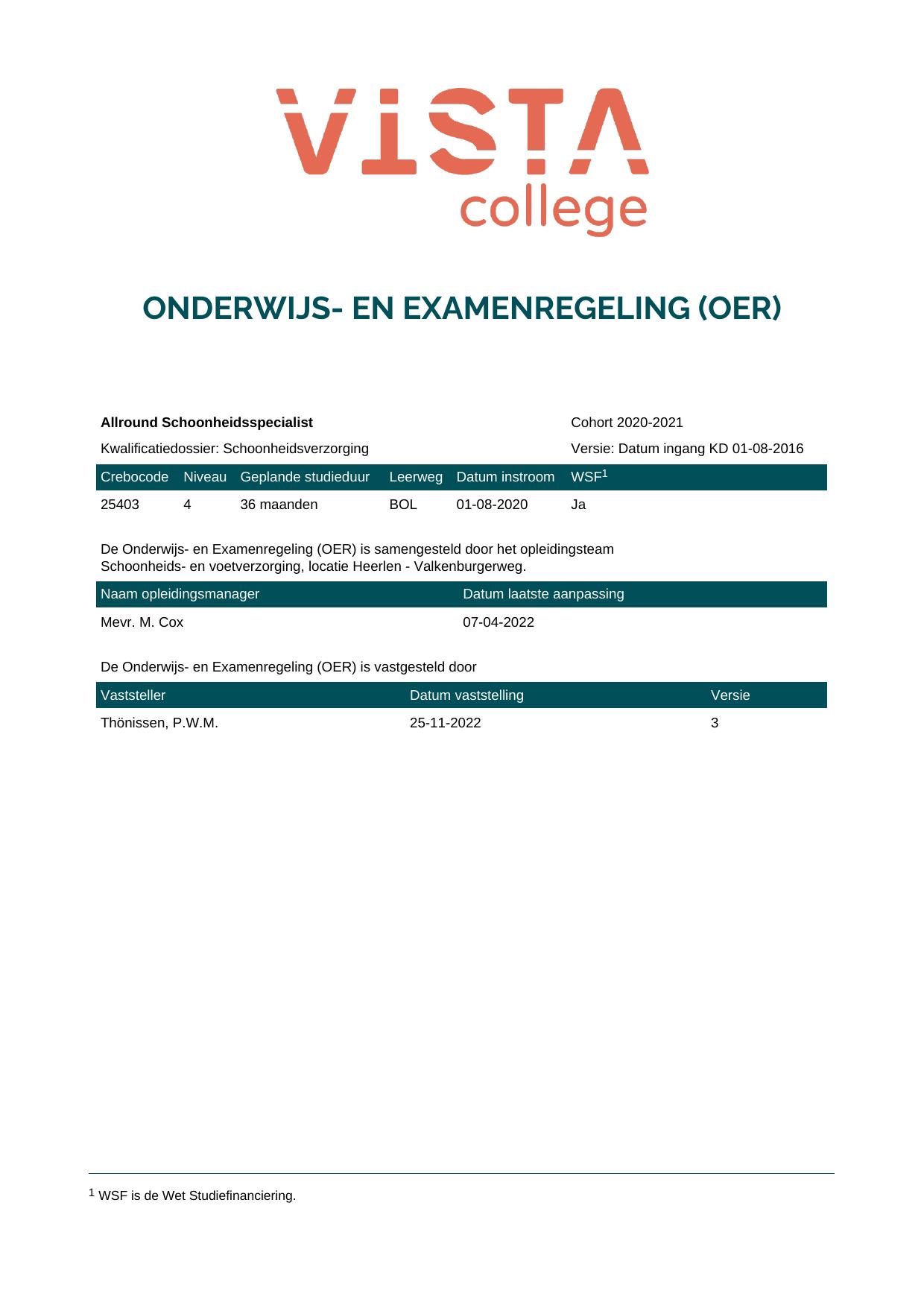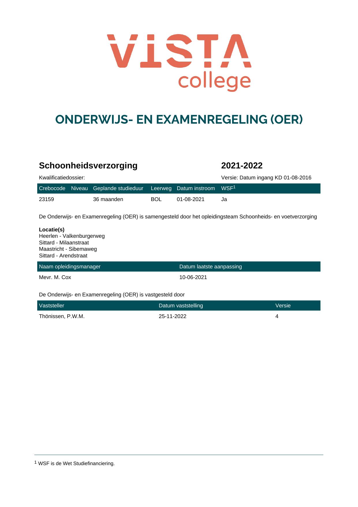 Schoonheidsverzorging 2S23159BV3V1 in cohort 2021-2022