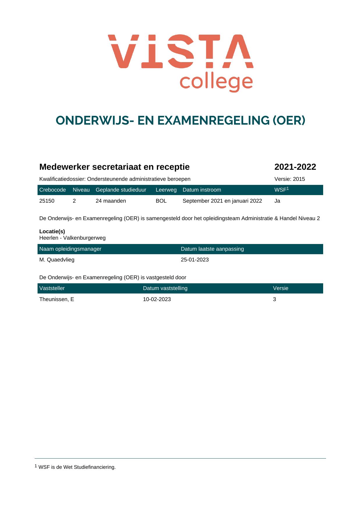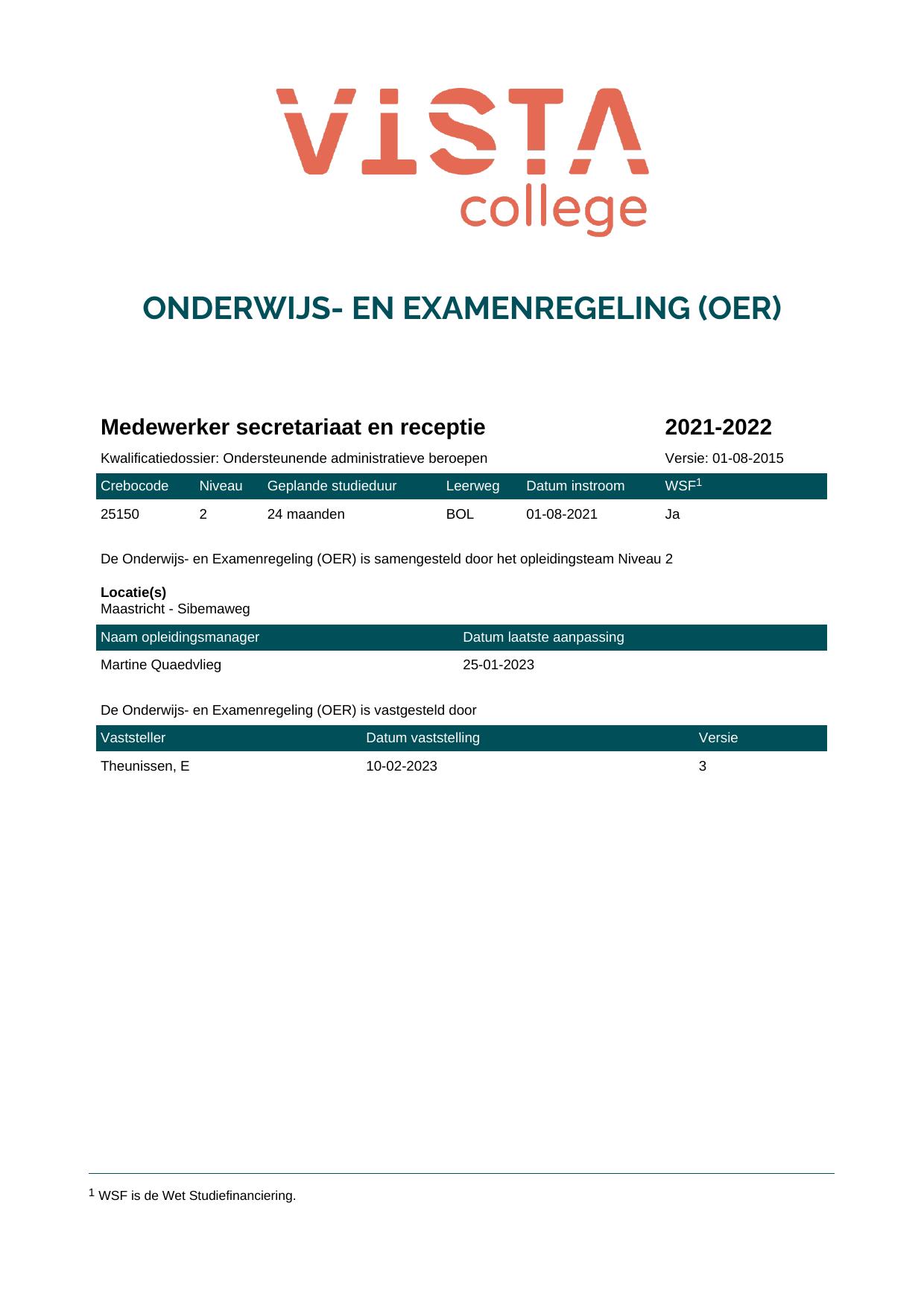 Medewerker secretariaat en receptie 25150O1S in cohort 2021-2022