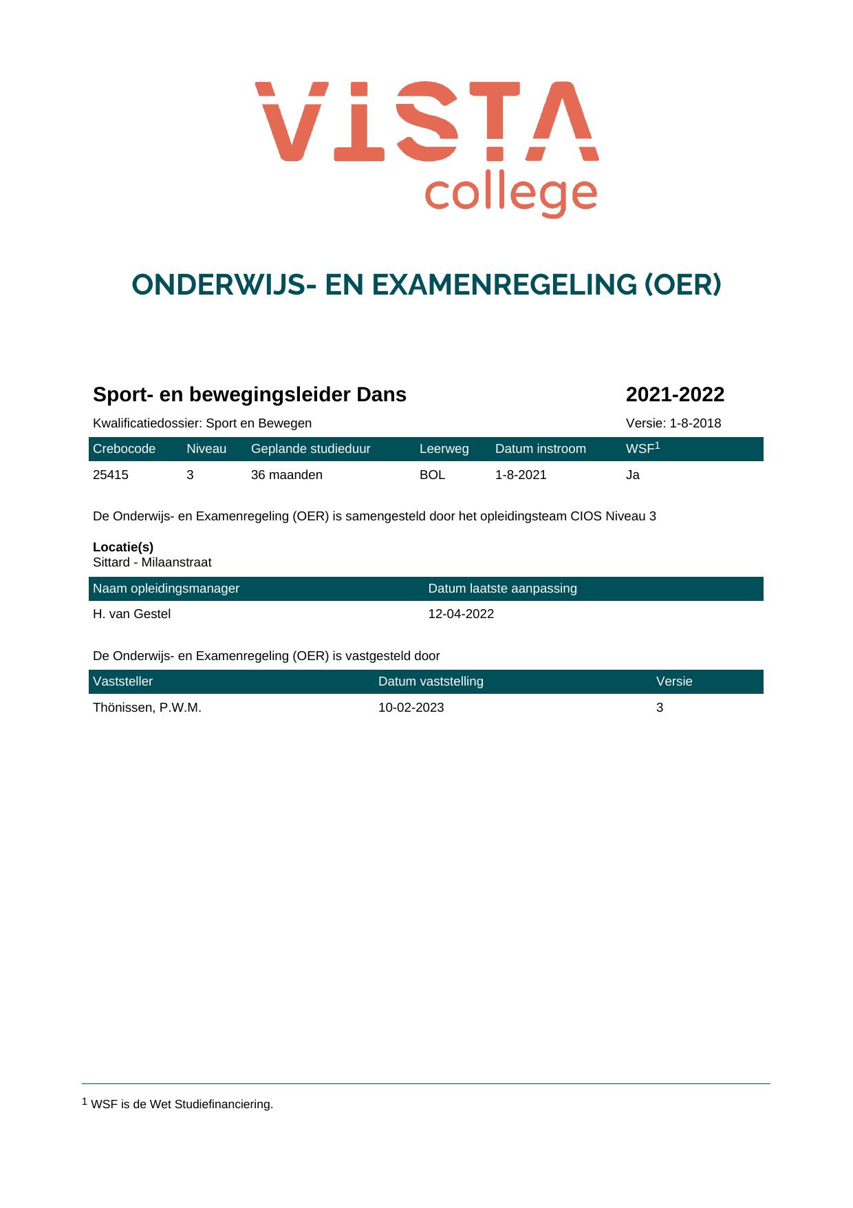 Sport- en bewegingsleider Dans 2F25415BV3A1 in cohort 2021-2022