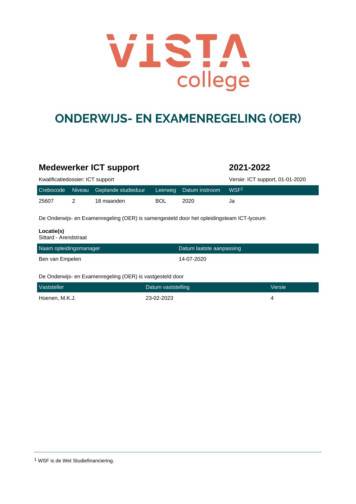 Medewerker ICT support 1I25607BV2V1 in cohort 2021-2022