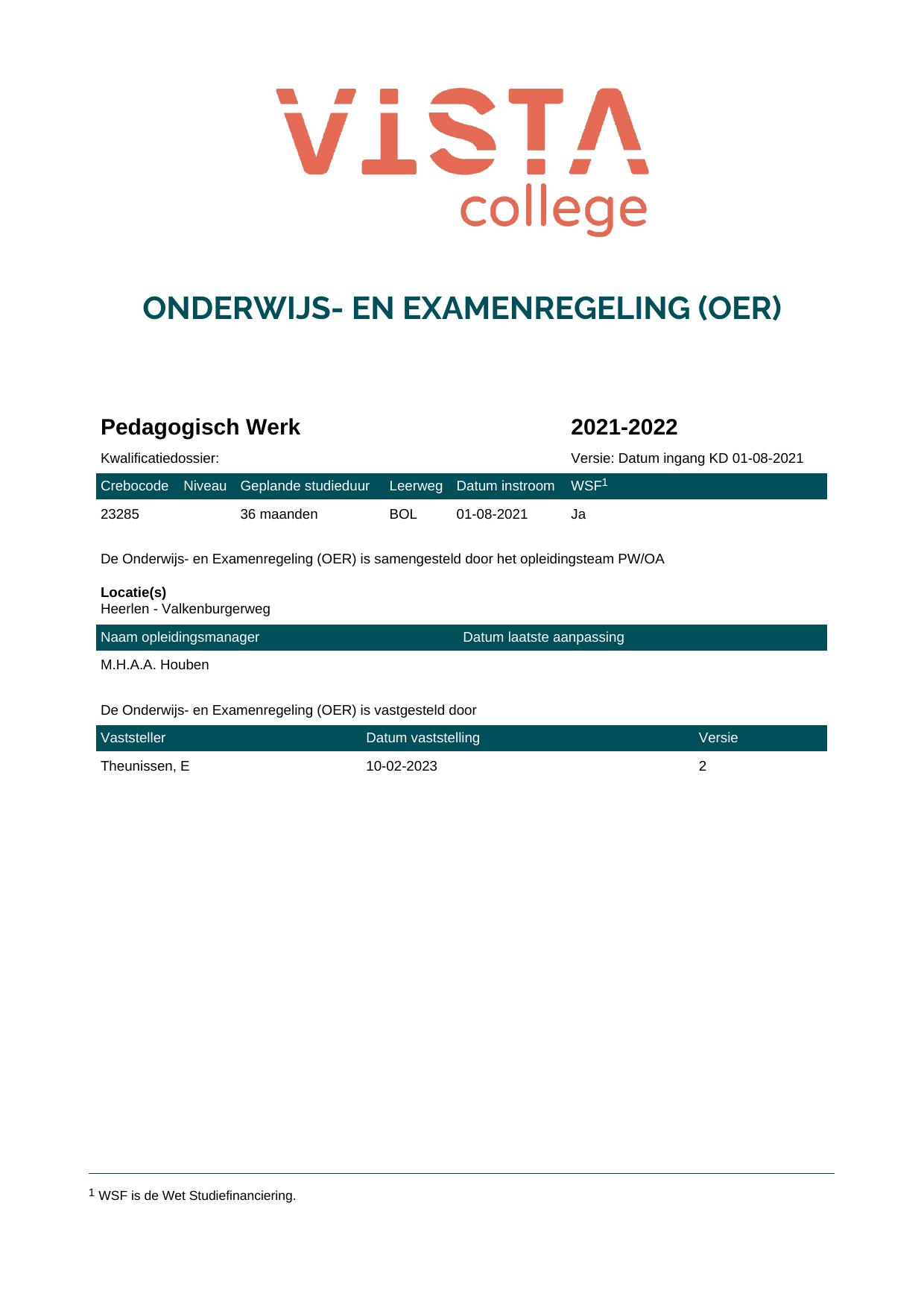 Pedagogisch Werk 23285O1S in cohort 2021-2022