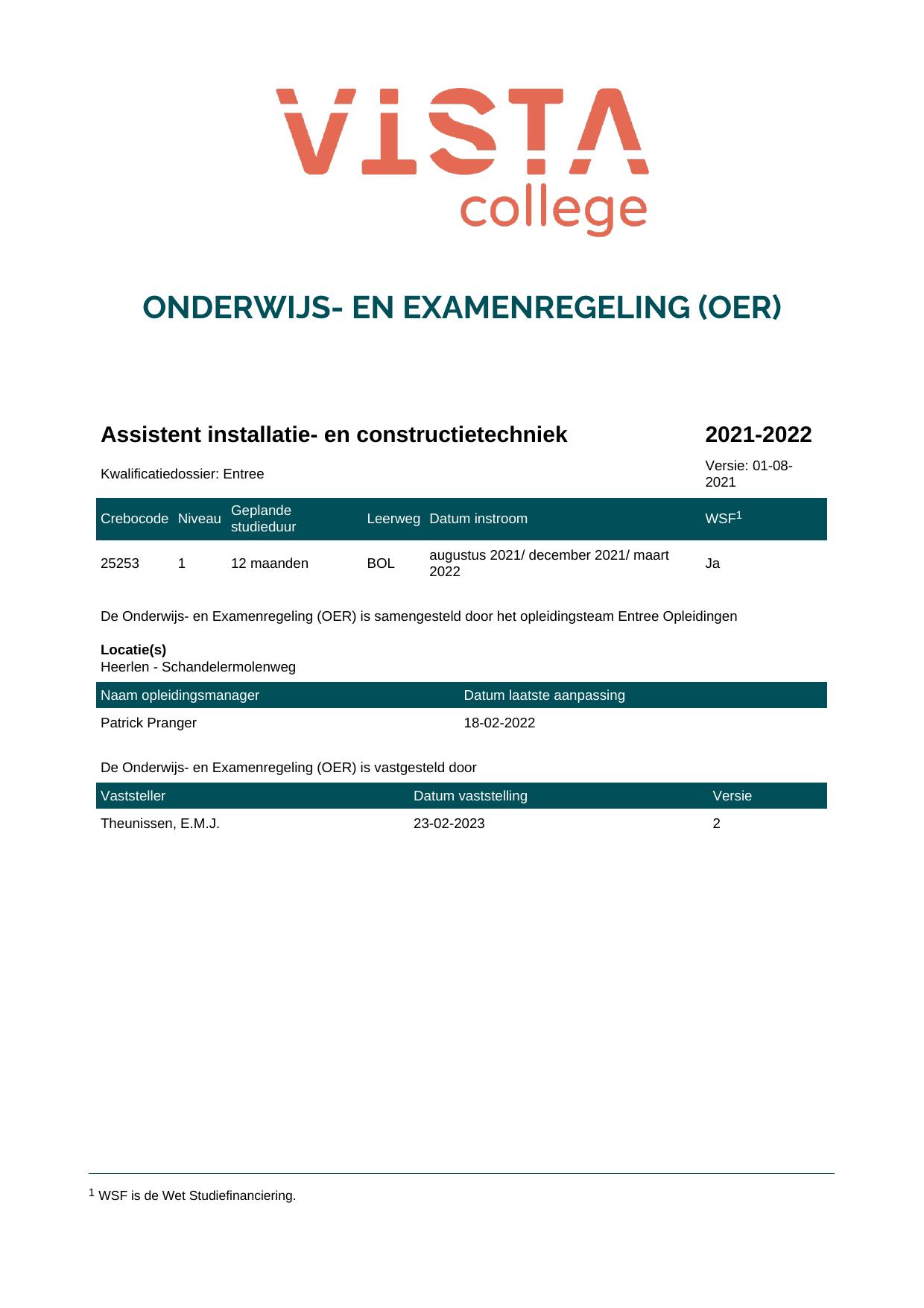 Assistent installatie- en constructietechniek 25253O1S in cohort 2021-2022