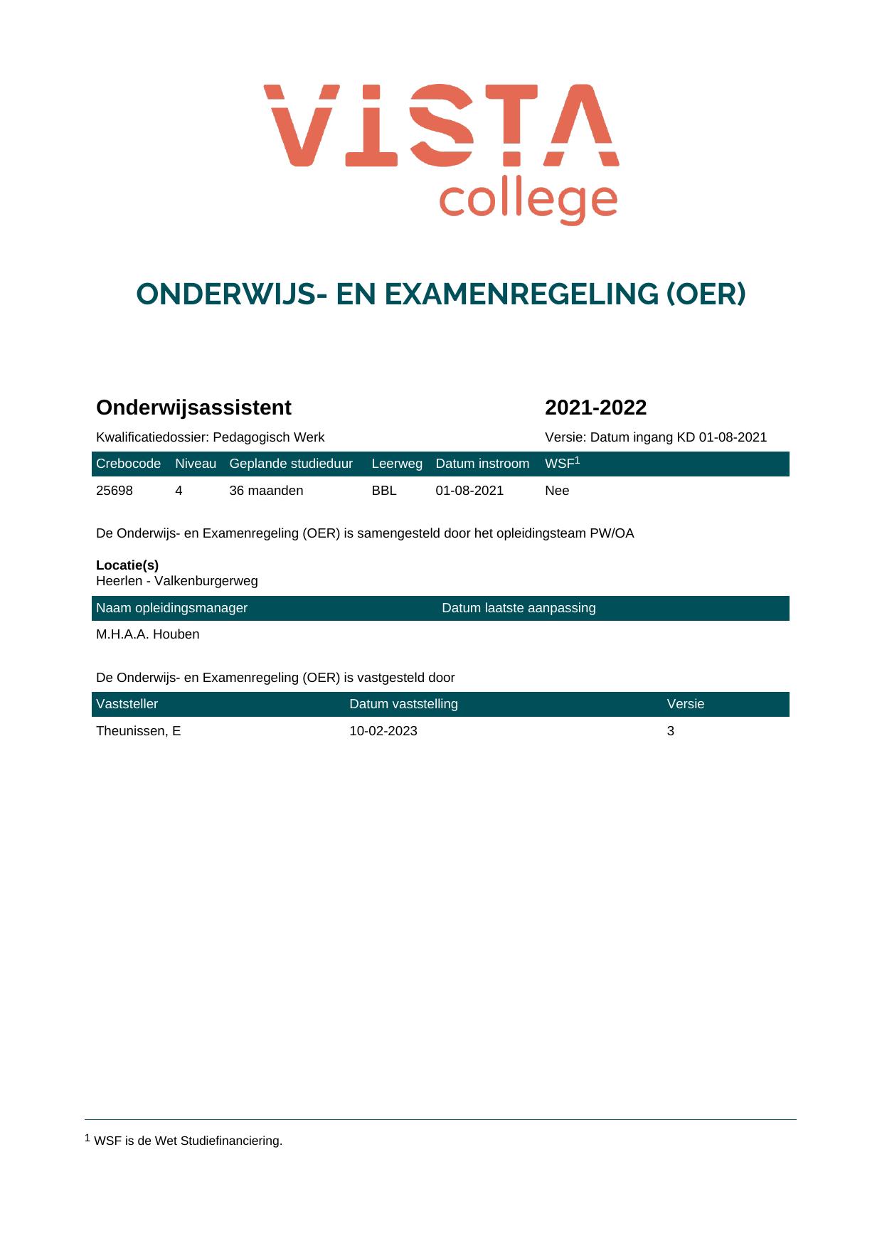 Onderwijsassistent 25698B1S in cohort 2021-2022