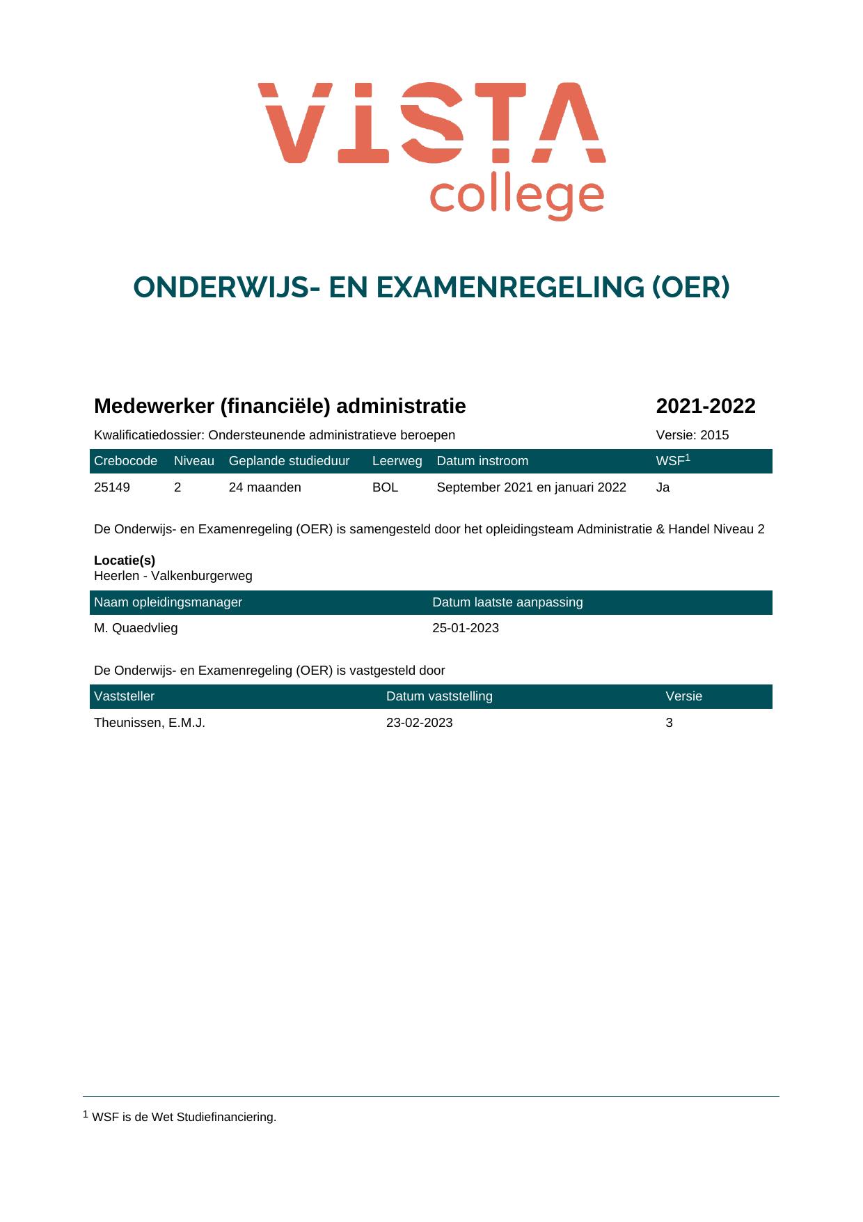 Medewerker (financiële) administratie 1F25149BV2V1 in cohort 2021-2022