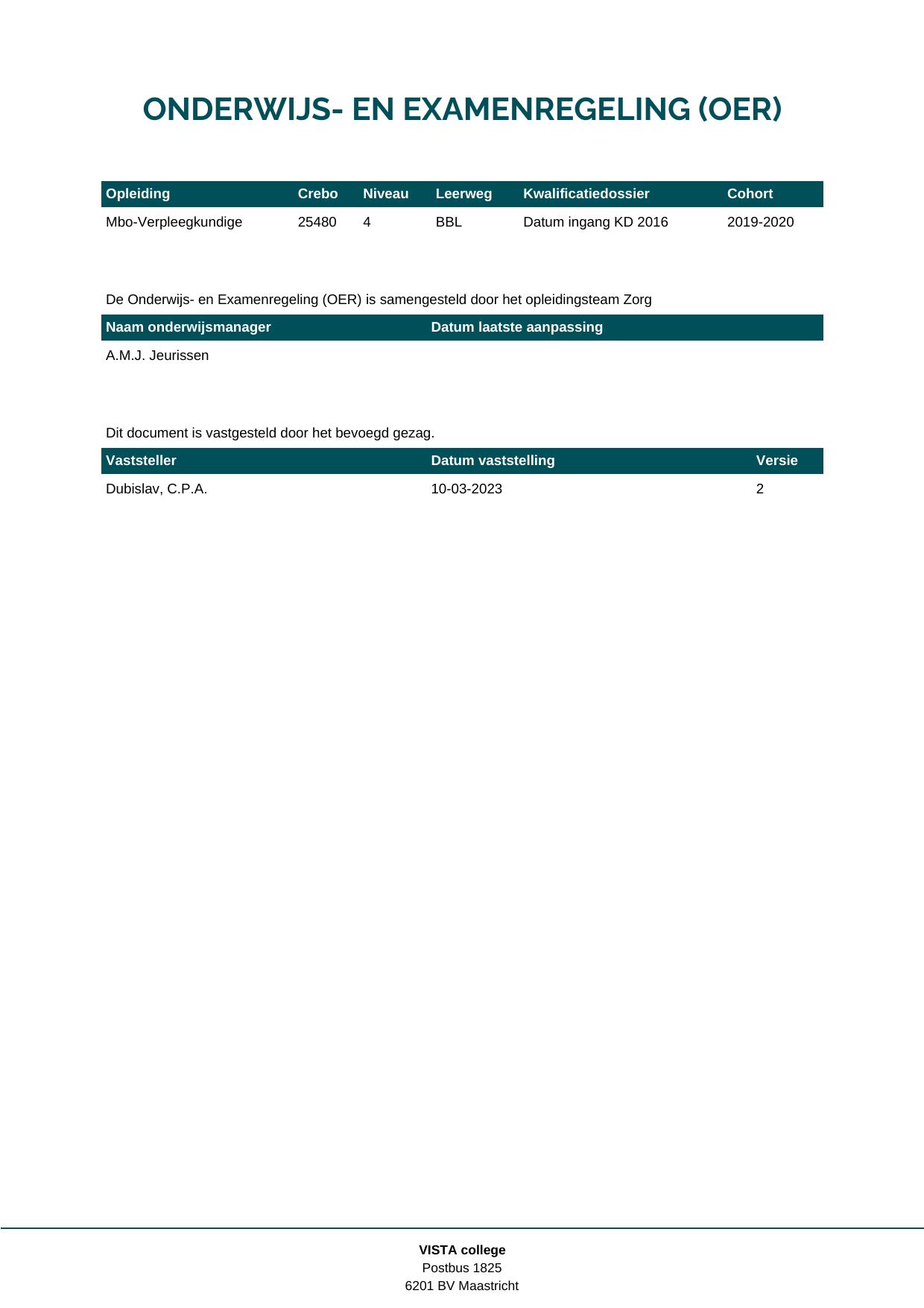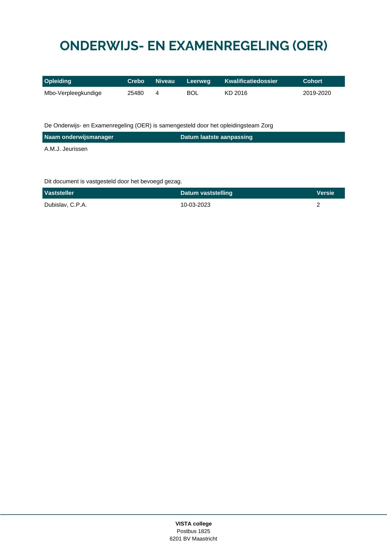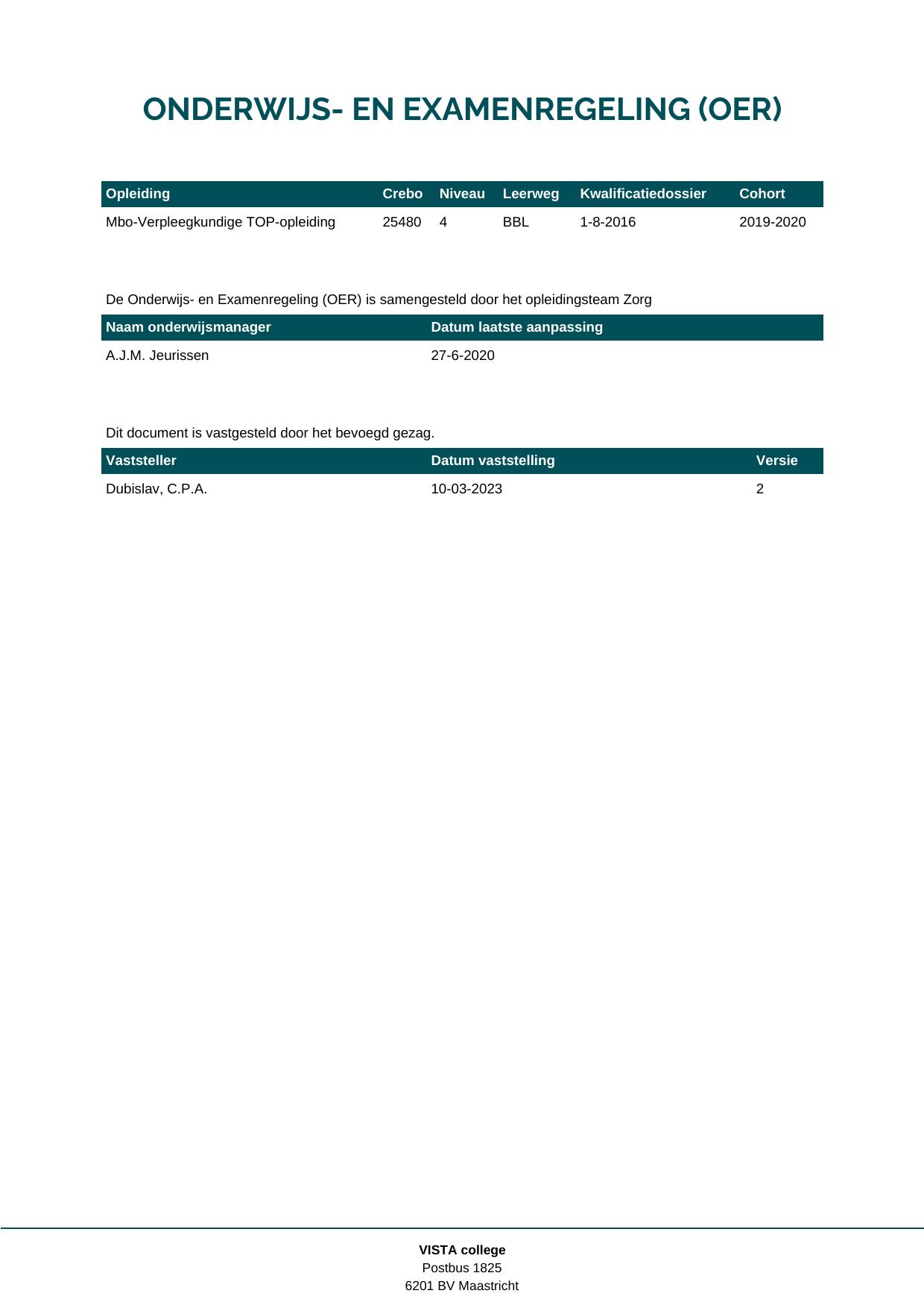 Mbo-Verpleegkundige TOP-opleiding 25480B5S in cohort 2019-2020