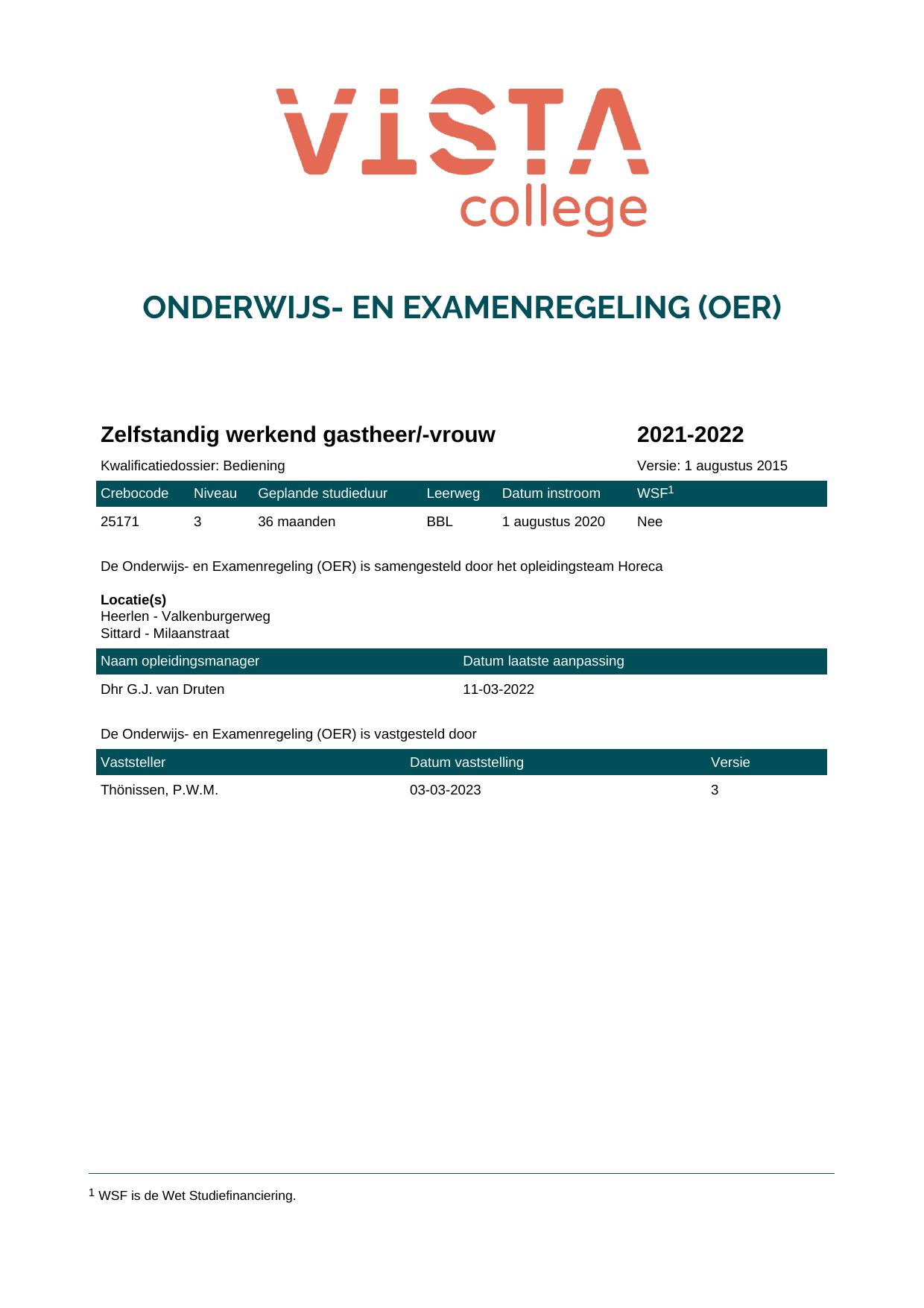 Zelfstandig werkend gastheer/-vrouw 25171B1S in cohort 2021-2022