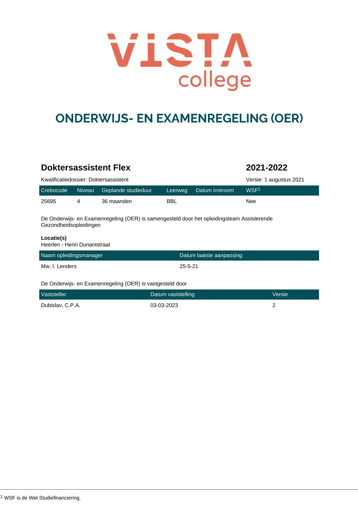 Doktersassistent Flex 25695B1S in cohort 2021-2022