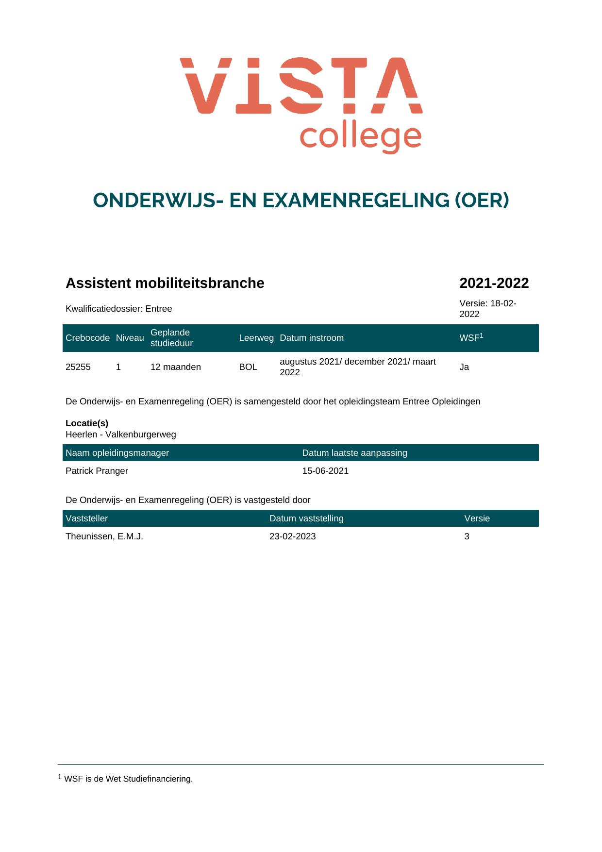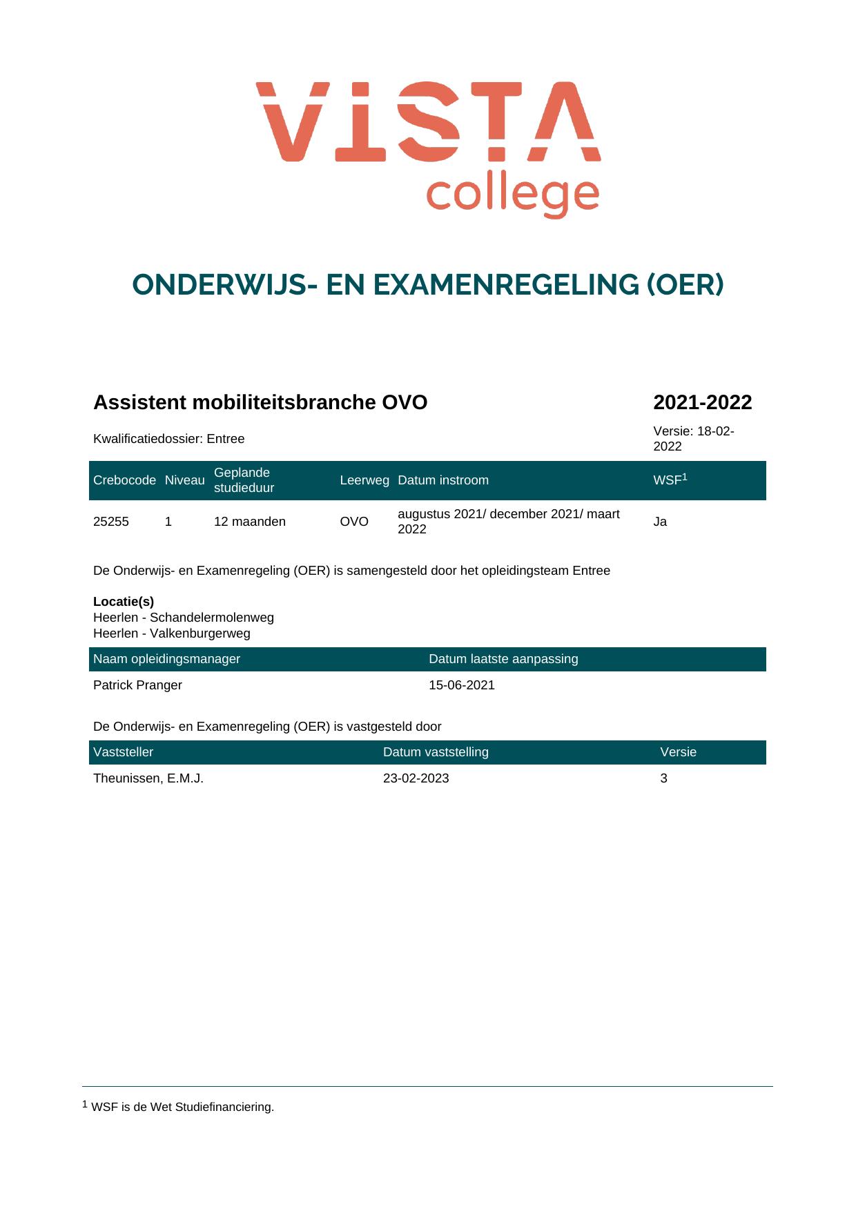 Assistent mobiliteitsbranche OVO 25255OVO in cohort 2021-2022