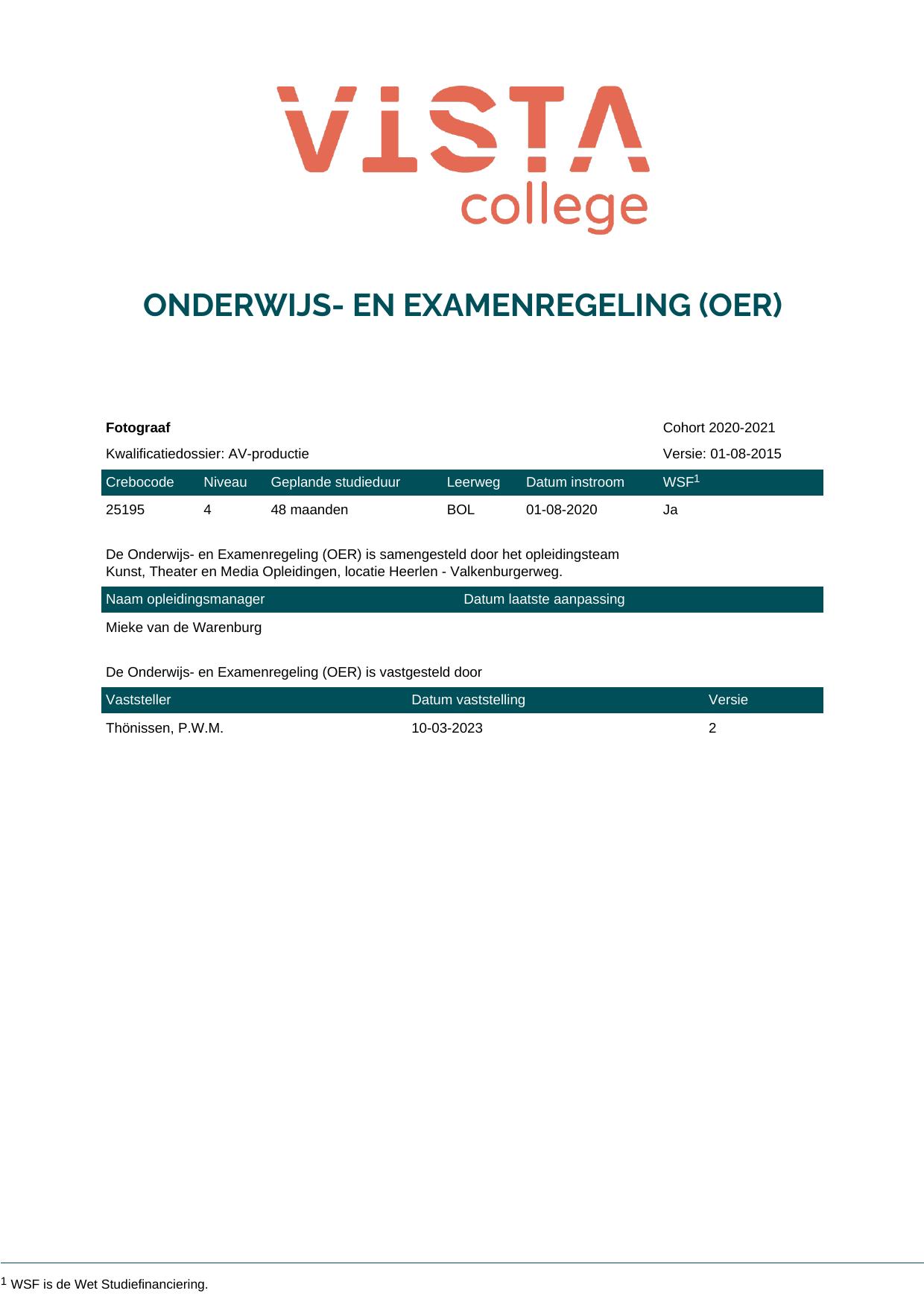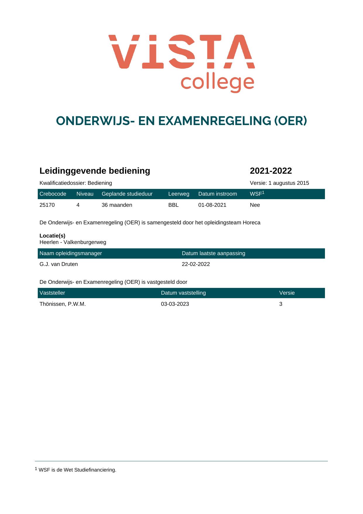 Leidinggevende bediening 25170B1S in cohort 2021-2022