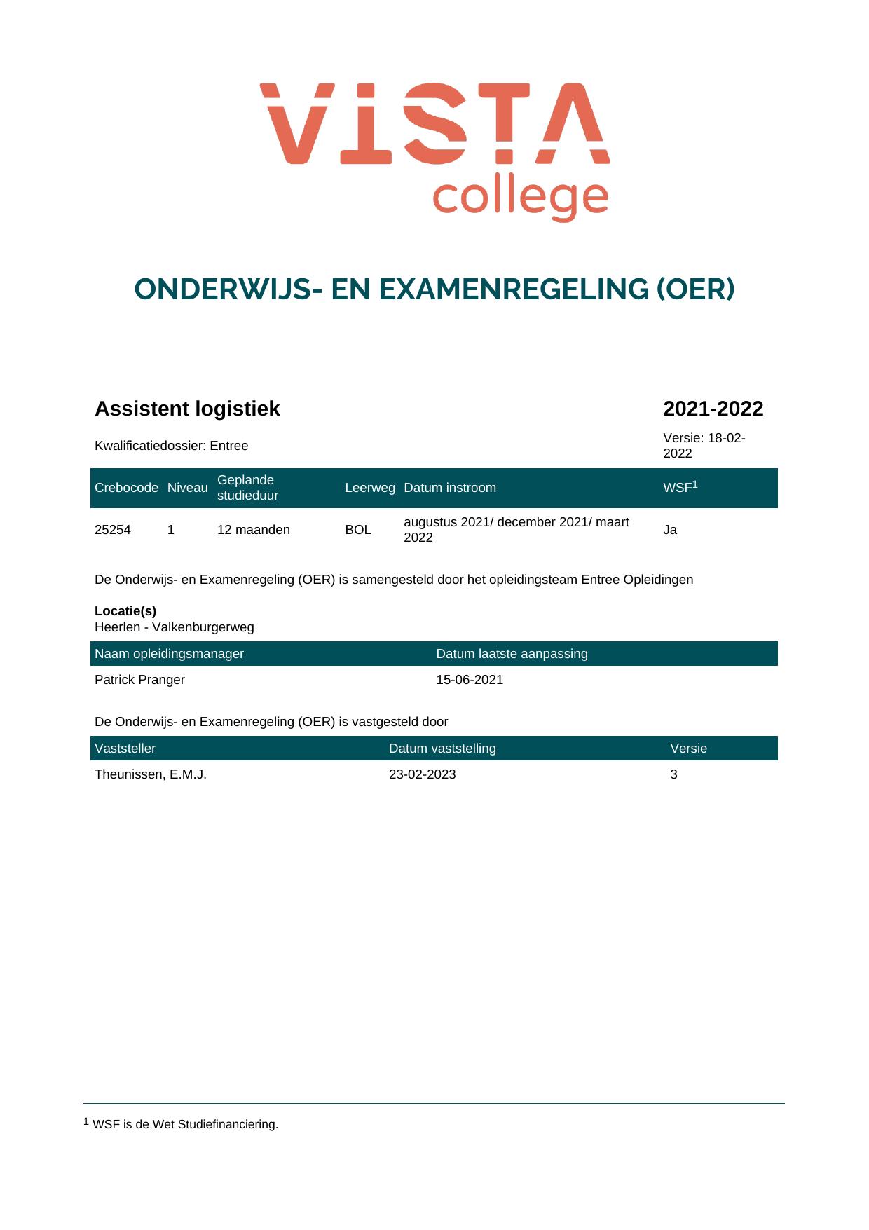 Assistent logistiek 25254O1S in cohort 2021-2022