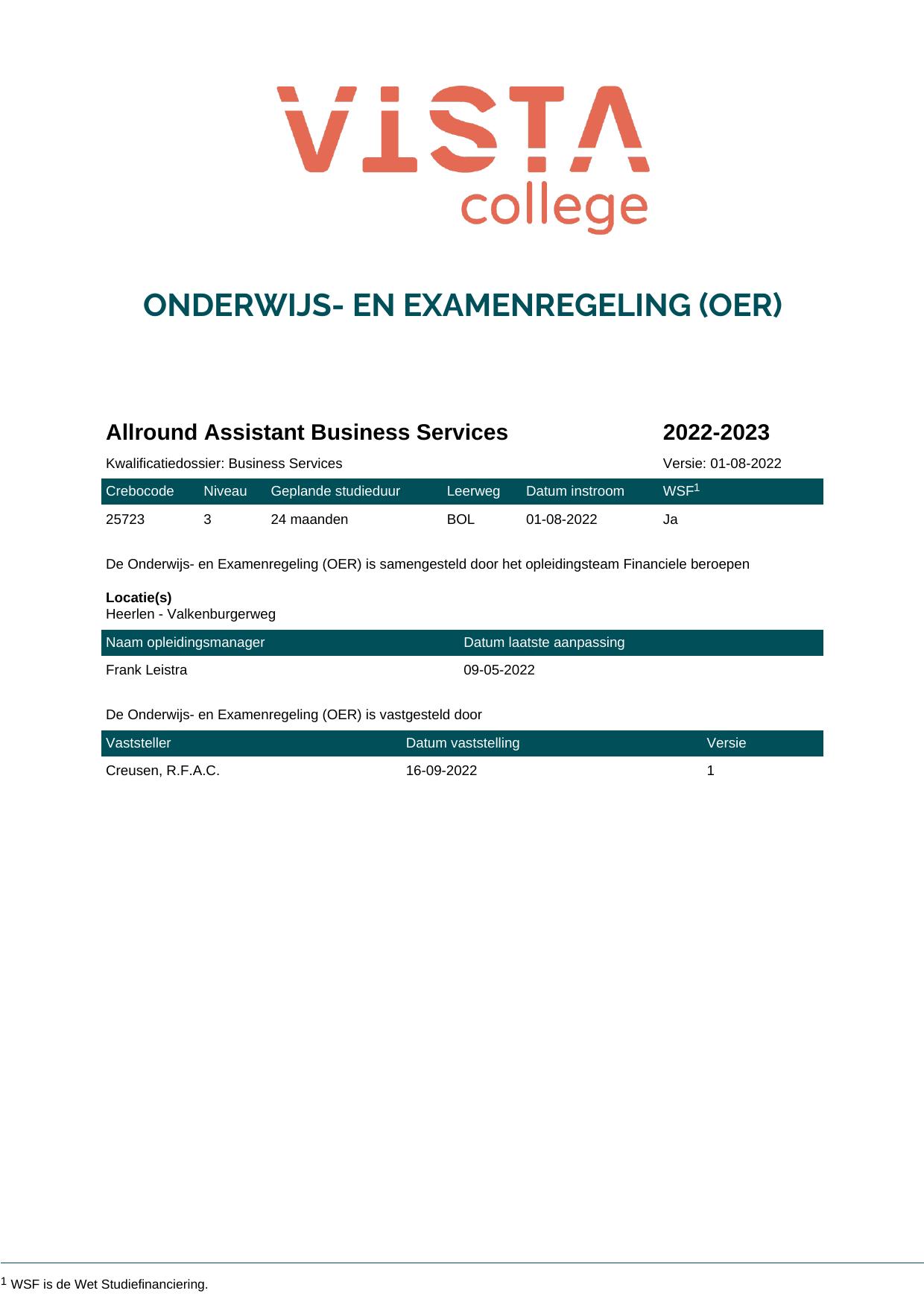 Allround Assistant Business Services 25723BOL in cohort 2022-2023