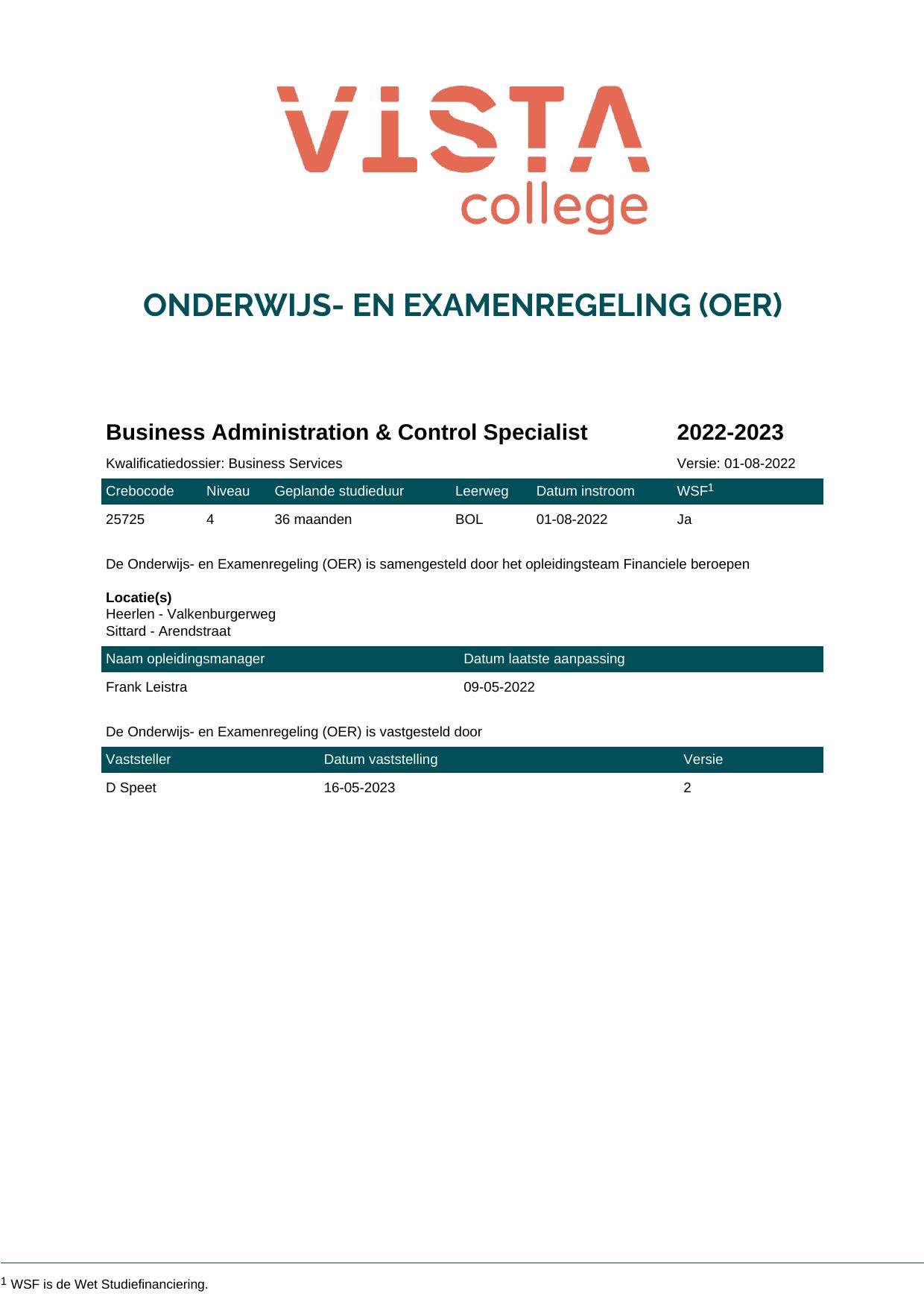 Business Administration & Control Specialist 25725BOL in cohort 2022-2023