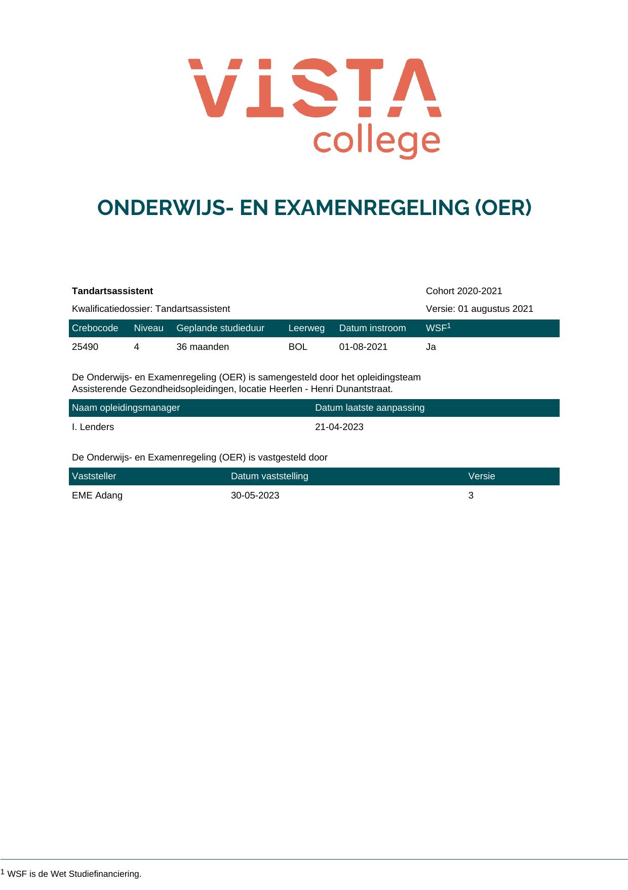 Tandartsassistent 25490O1S in cohort 2020-2021