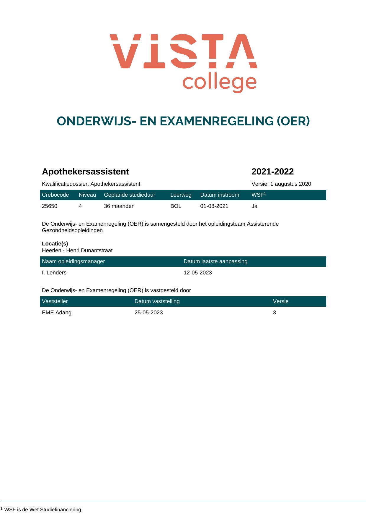 Apothekersassistent 25650O1S in cohort 2021-2022