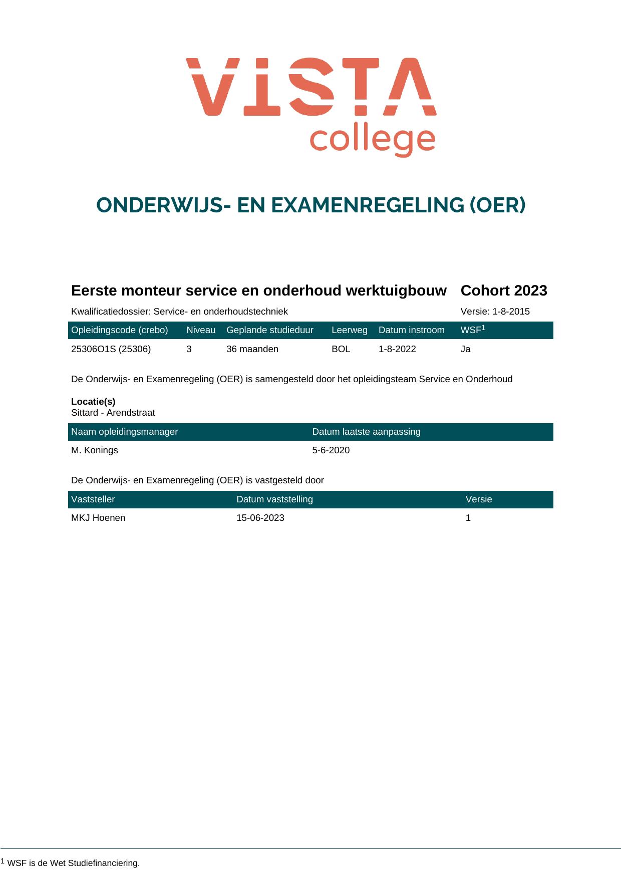 Eerste monteur service en onderhoud werktuigbouw 25306O1S in cohort 2023-2024